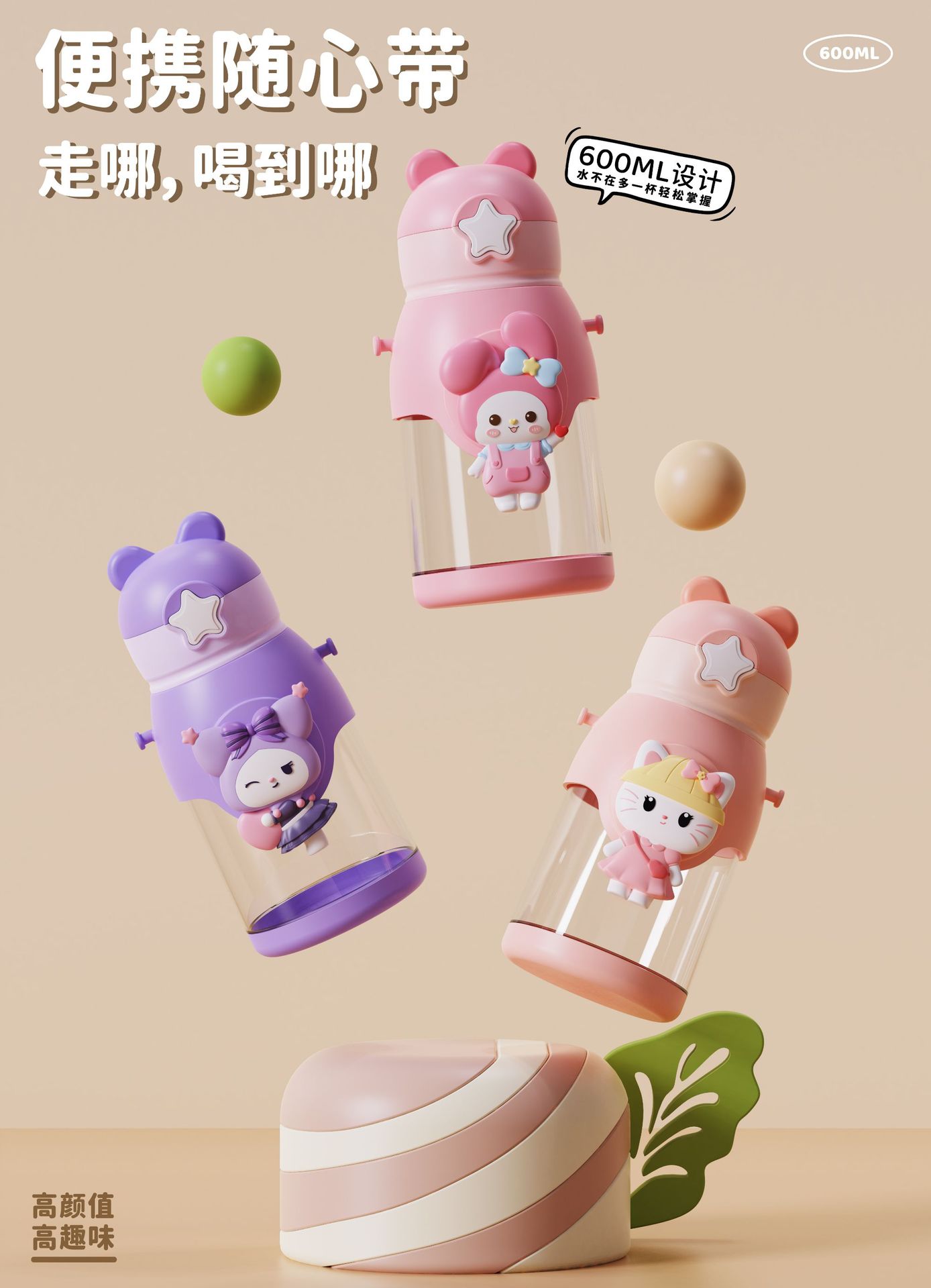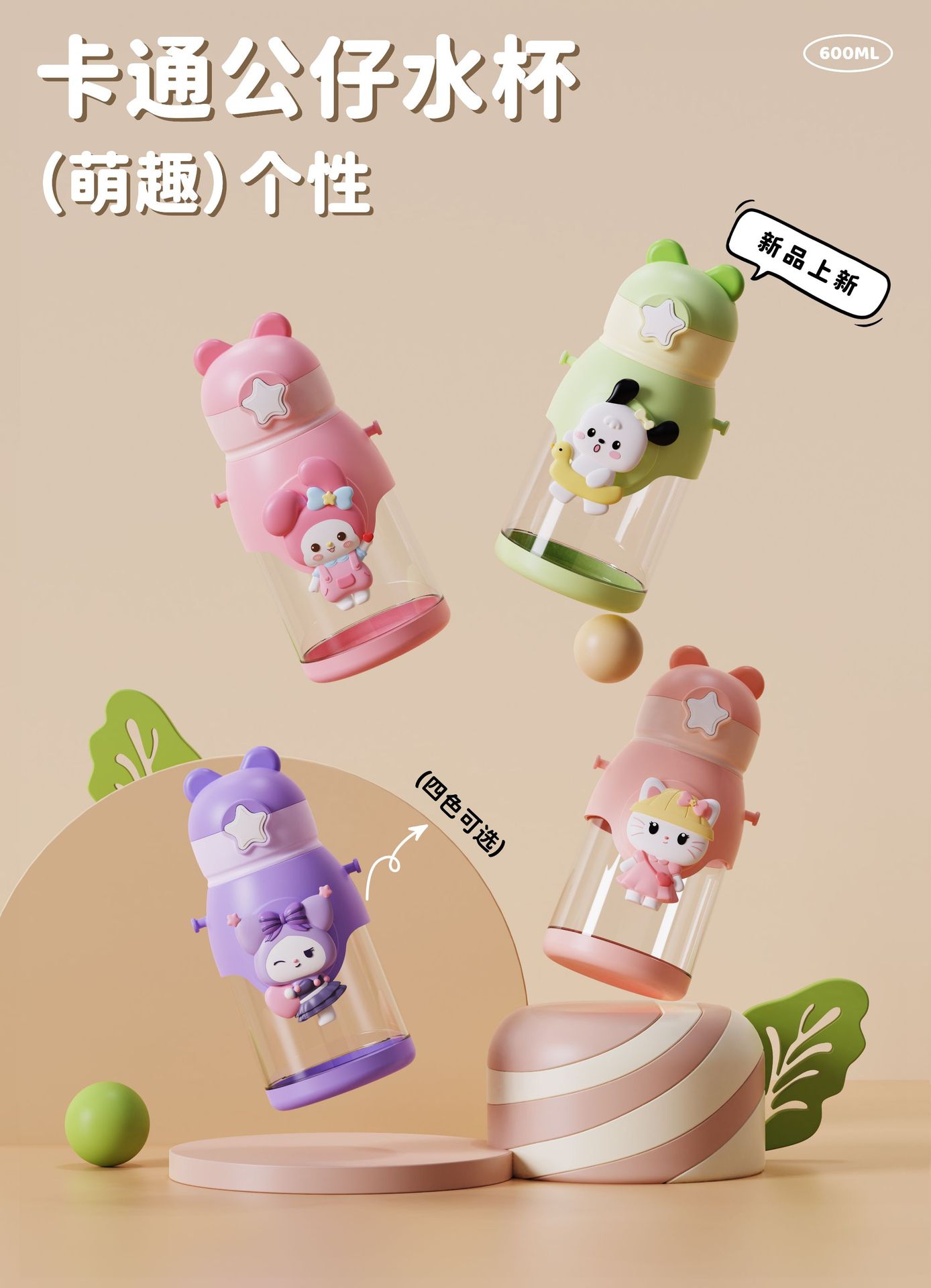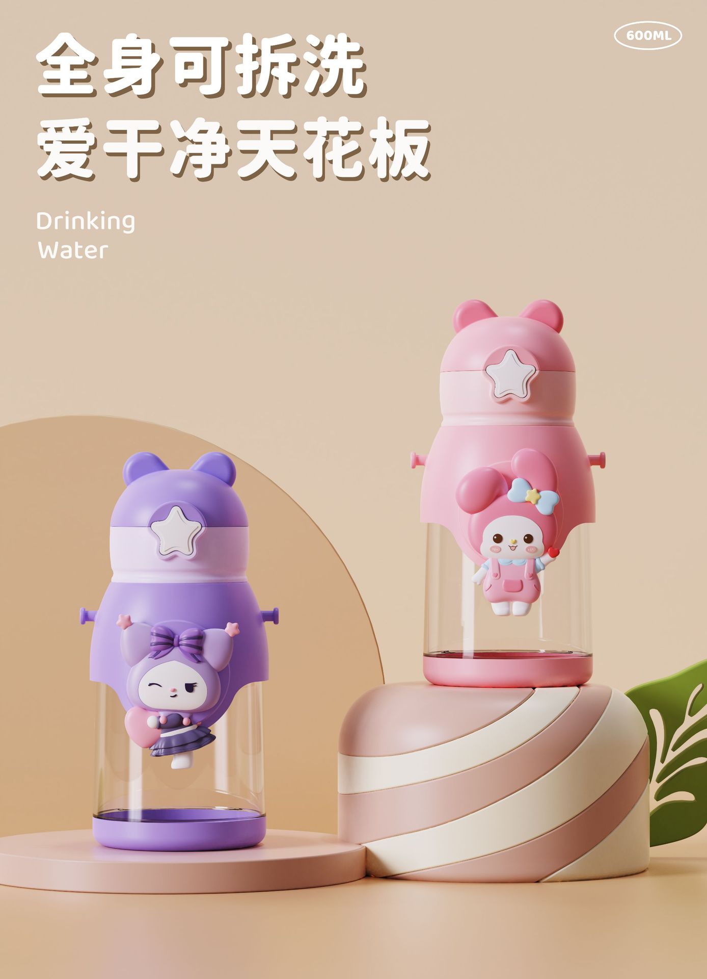 new children's cups kindergarten elementary school baby anti-fall cup cute girl student antlers pot with straw
