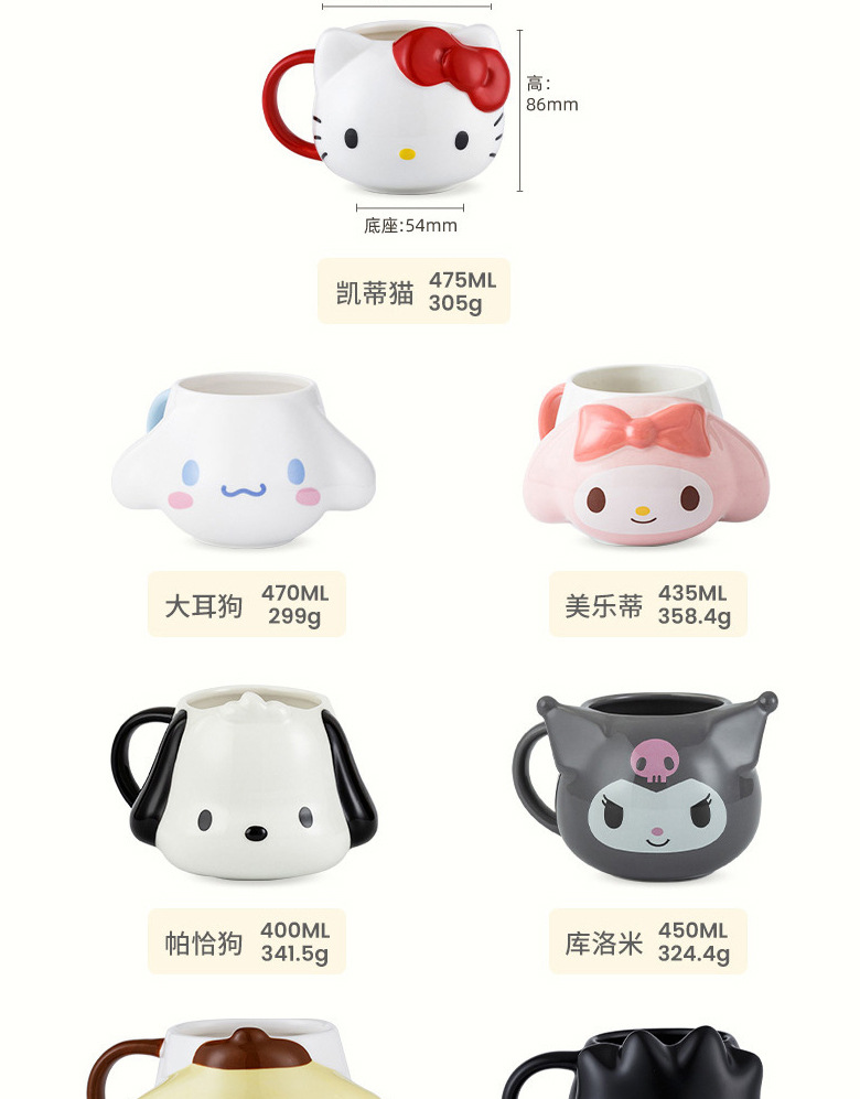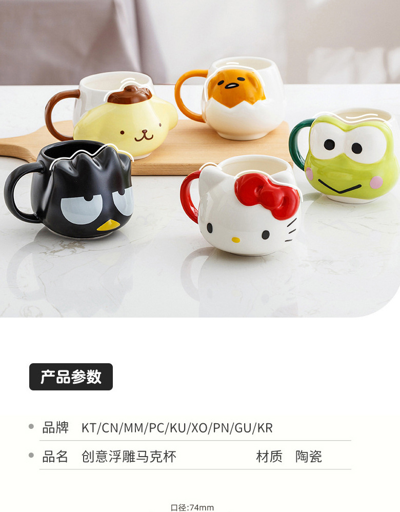 sanrio ceramic embossed mug creative cup children's home cute girl drinking cup office coffee cup
