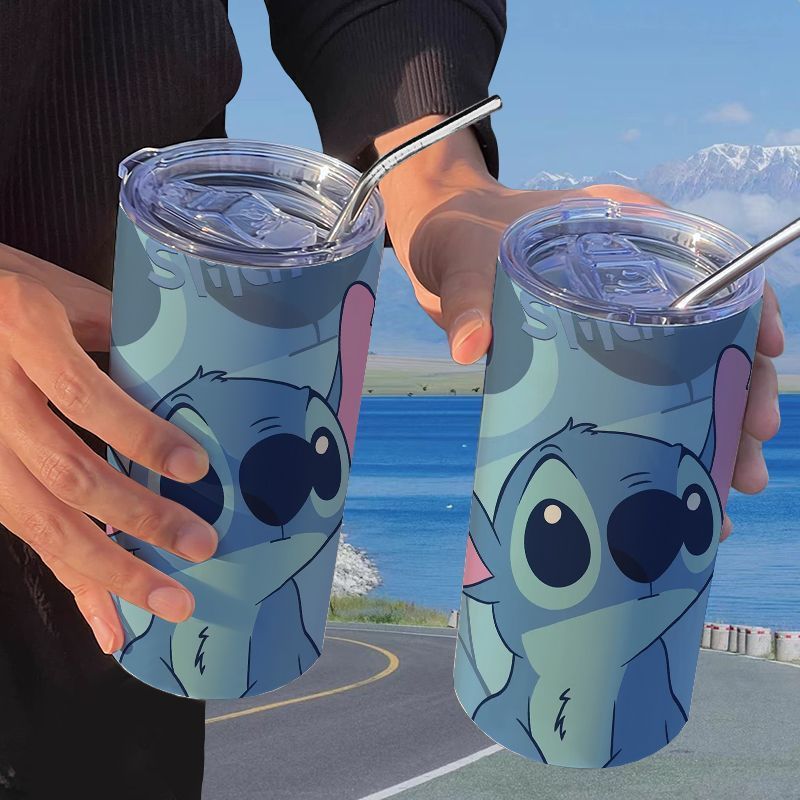 stitch couple cute thermal mug with straw tumbler coffee cup ins good-looking portable student water cup