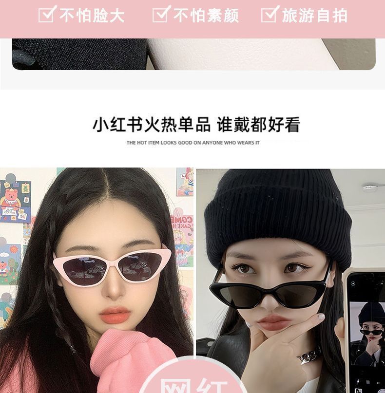 2023 New European and American Sweet Cool Hot Girl Style Cat Eye Small Face Sunglasses Women's Sunglasses Ins Internet Celebrity Korean Fashion