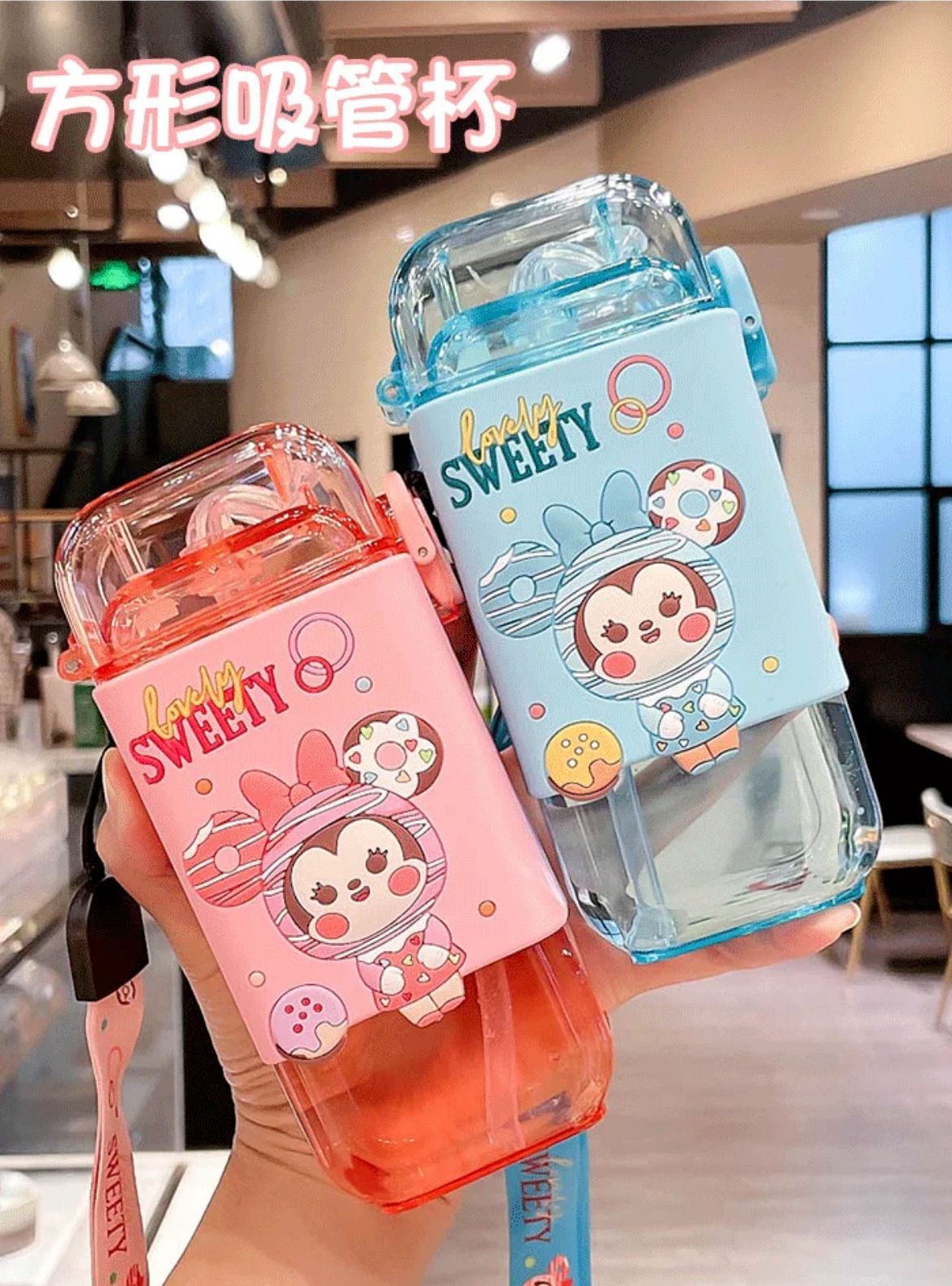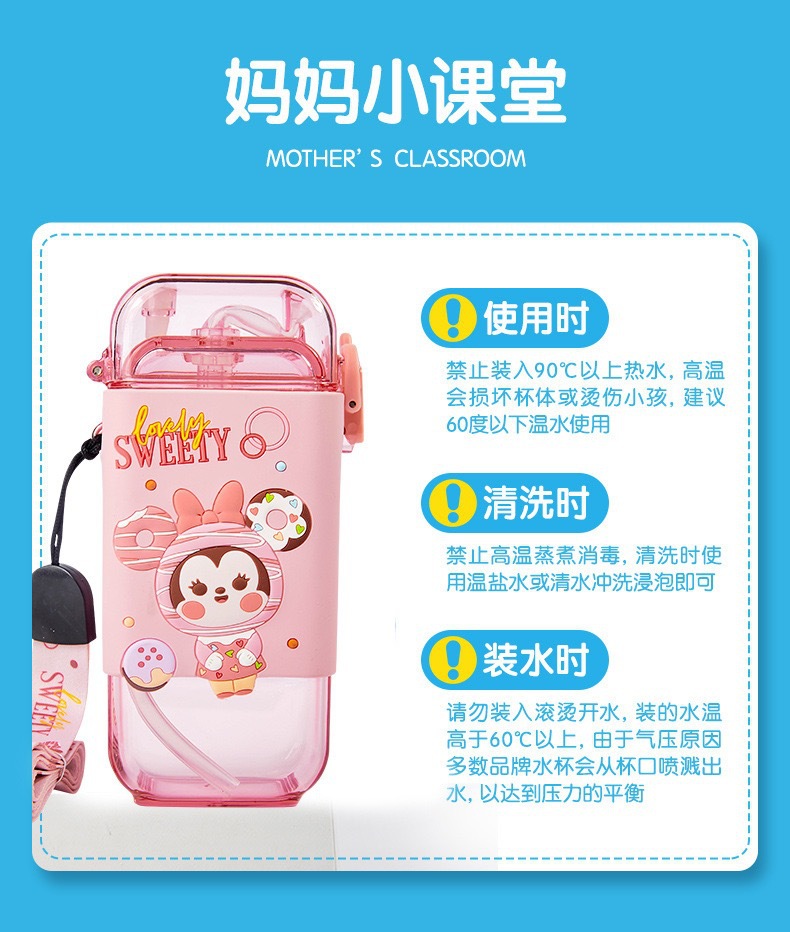 children's cups cartoon straw cup summer good-looking student cross-body cup kindergarten baby portable kettle