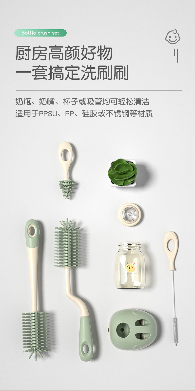 green elephant base straight handle brush suit