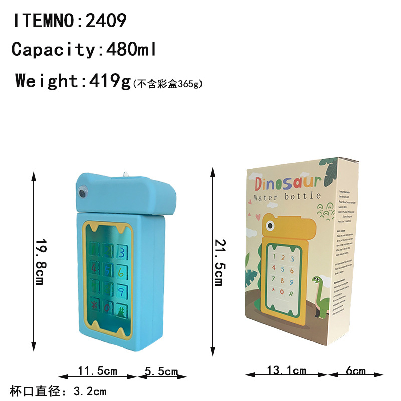 creative cartoon animal dinosaur straw strap plastic water cup children student outdoor amazon cross-border e-commerce