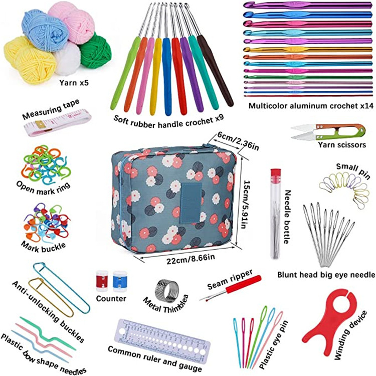 Cross-Border 107-Piece Set Crochet Hook Set Portable Wool Knitting Tools DIY Novice Crochet Complete Material Package