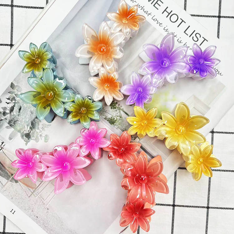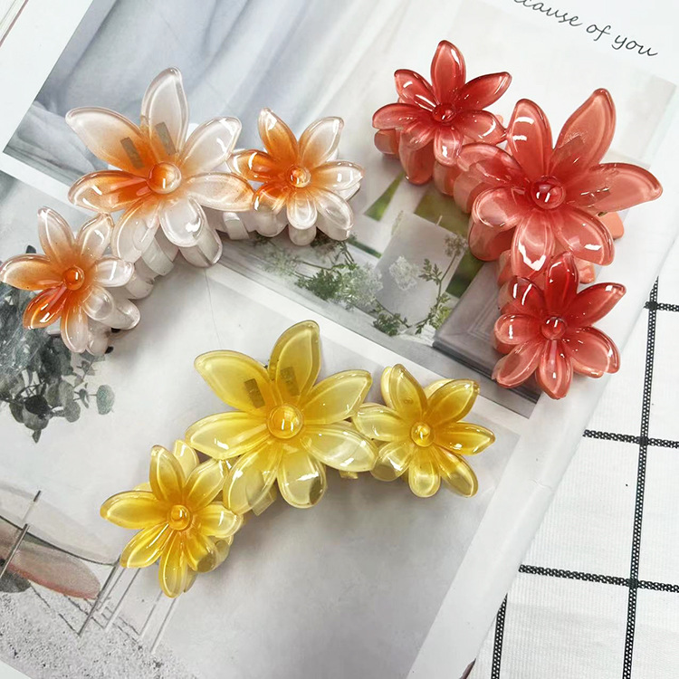 Cross-Border New Arrival All-Match and Cute Fashion Bright SUNFLOWER Grip French Plumeria Rubra Barrettes Shark Clip Hair Accessories for Women