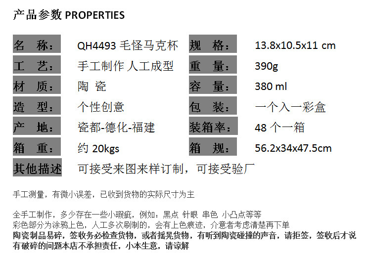 sullivan blue wool monster ceramic mug water cup large capacity cup spoof coffee cup cartoon animation wool monster cup
