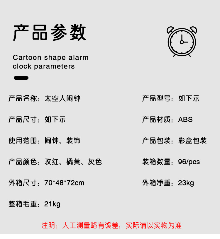 Packing Quantity: 96 piecesGross weight: 21KG Net weight: 23KG