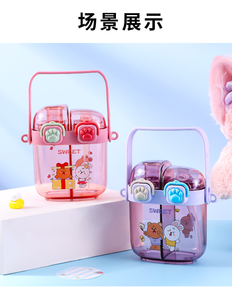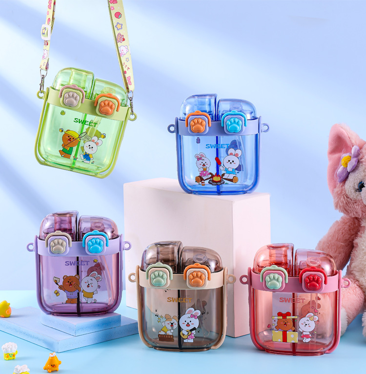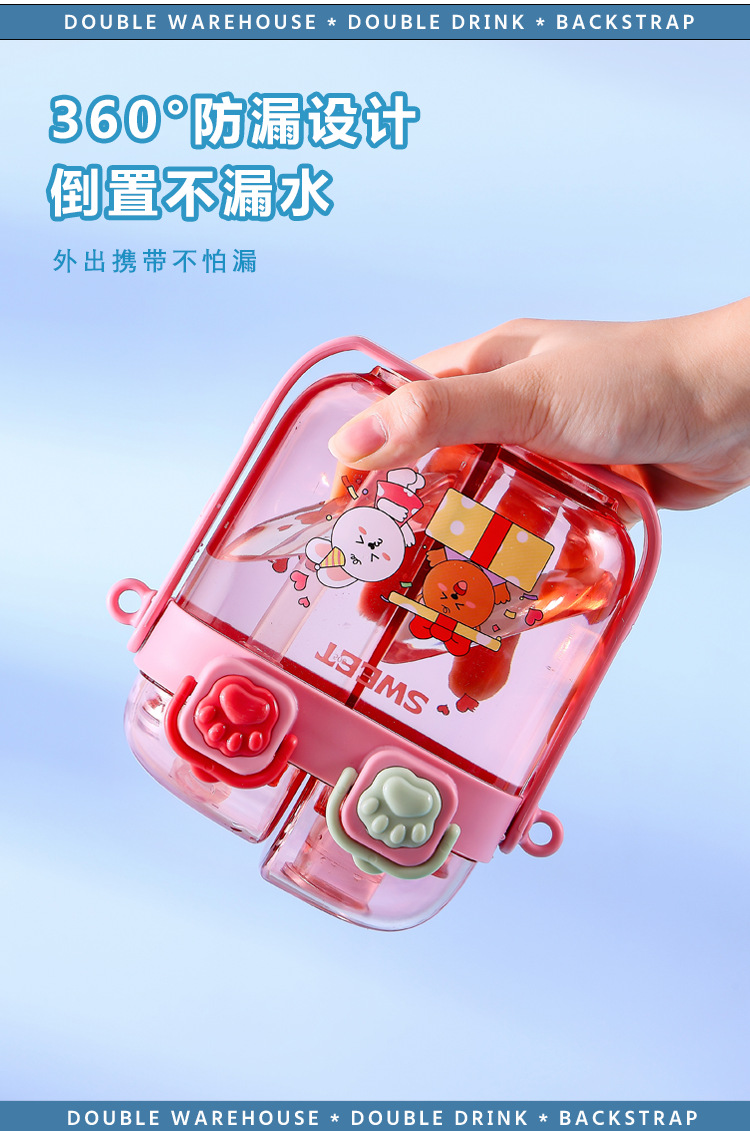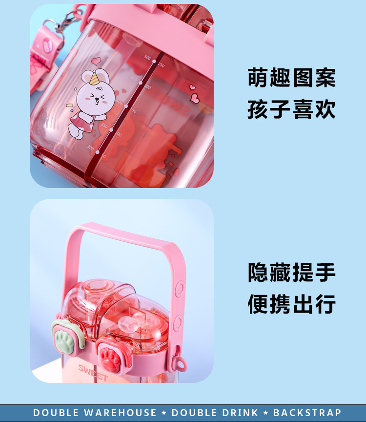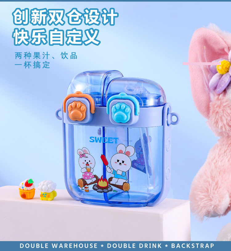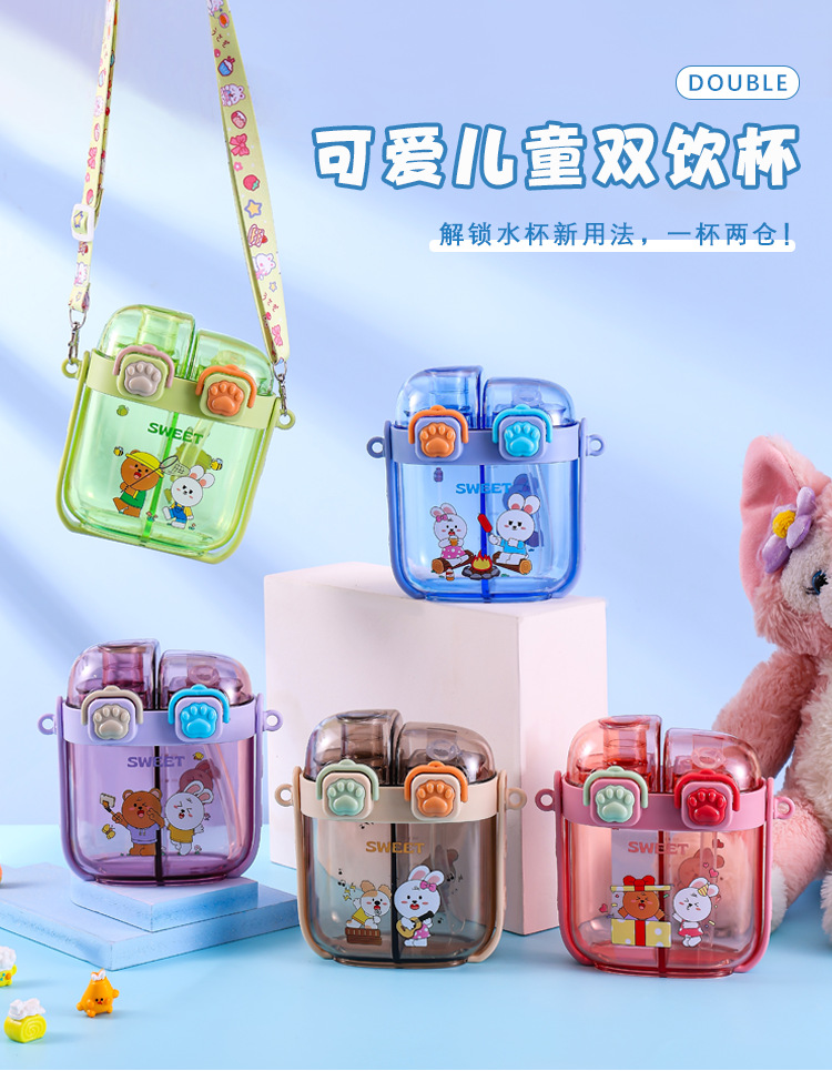 2024 new plastic children's double drink sub-warehouse water cup portable summer student good-looking children 500ml wholesale