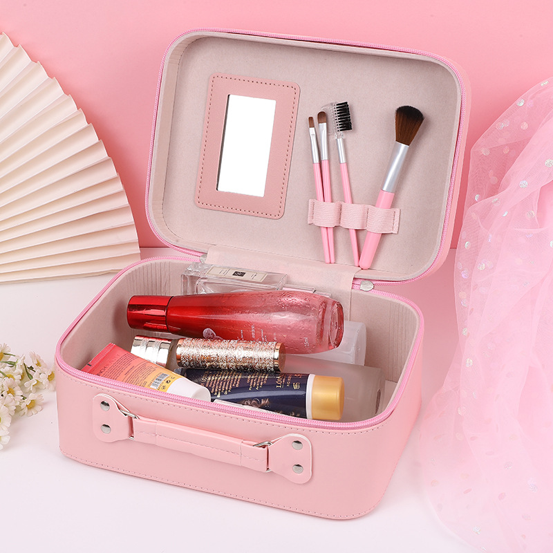 internet celebrity cosmetic case portable cosmetic bag skin care products large capacity storage box mirror makeup sanrio hand gift