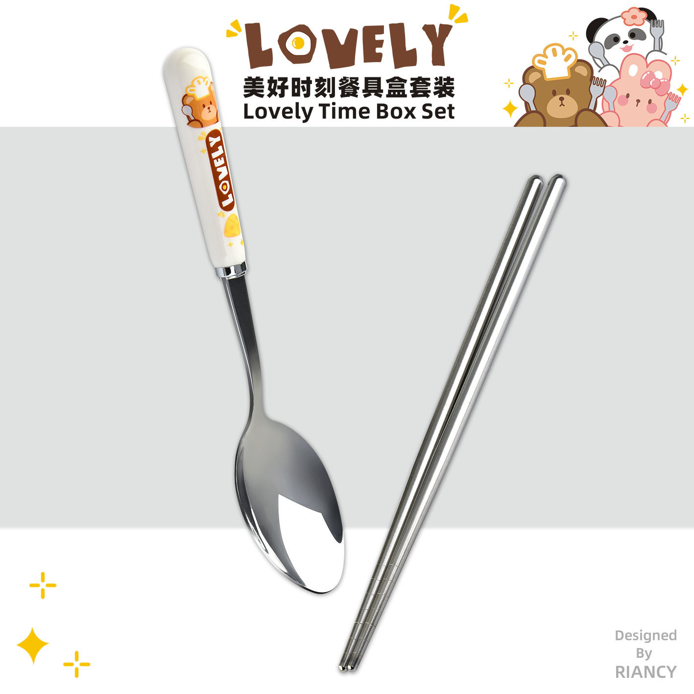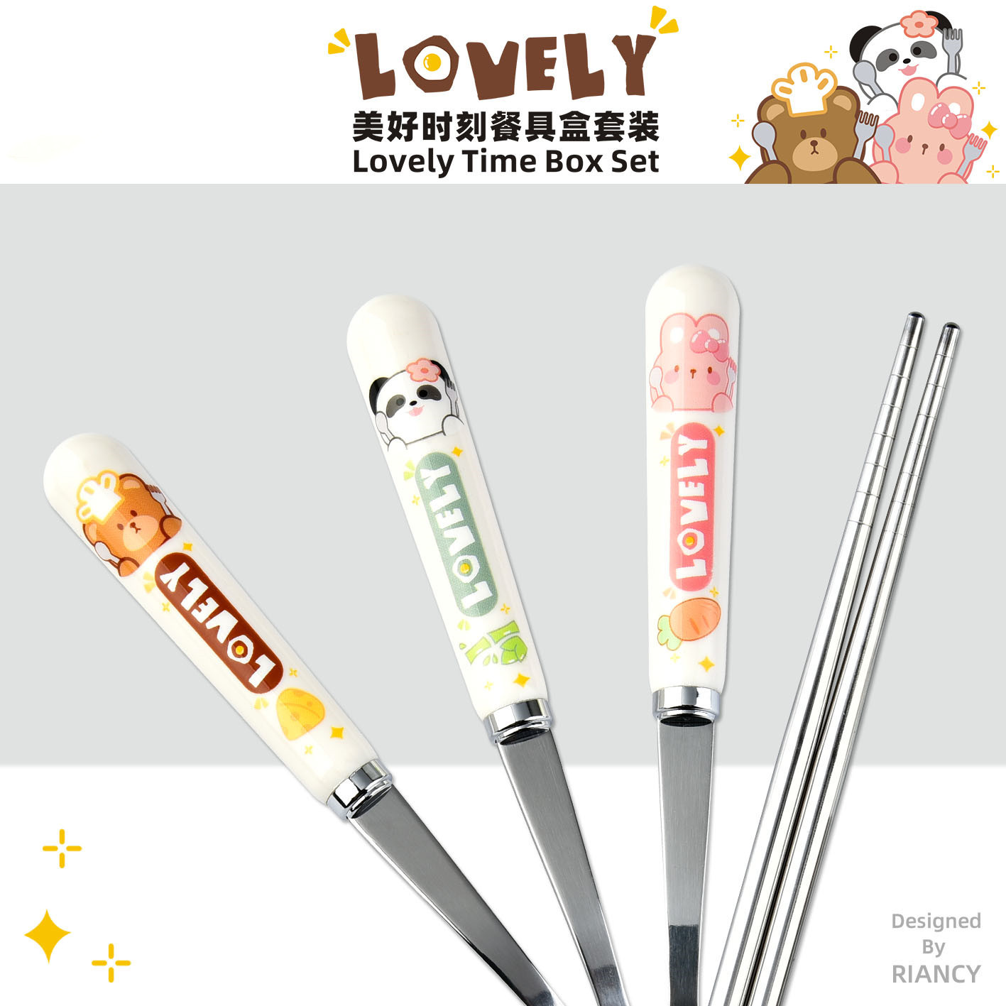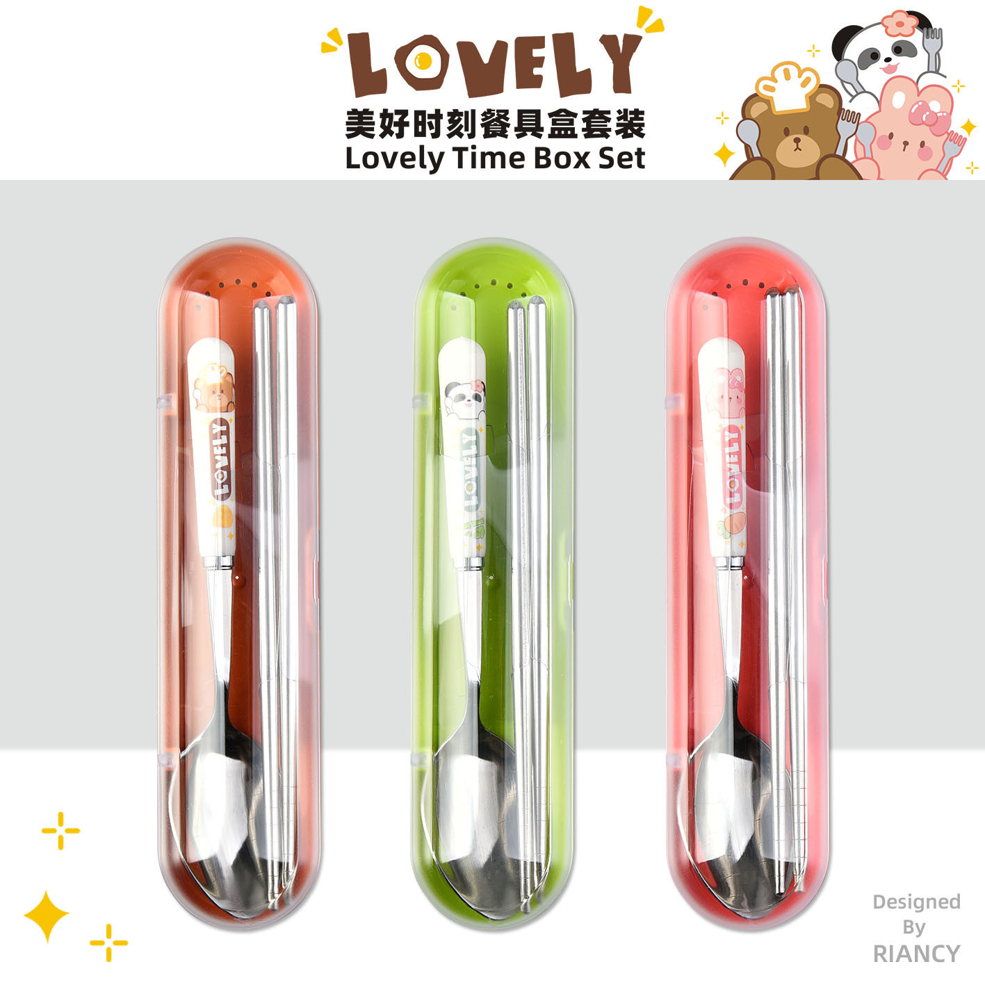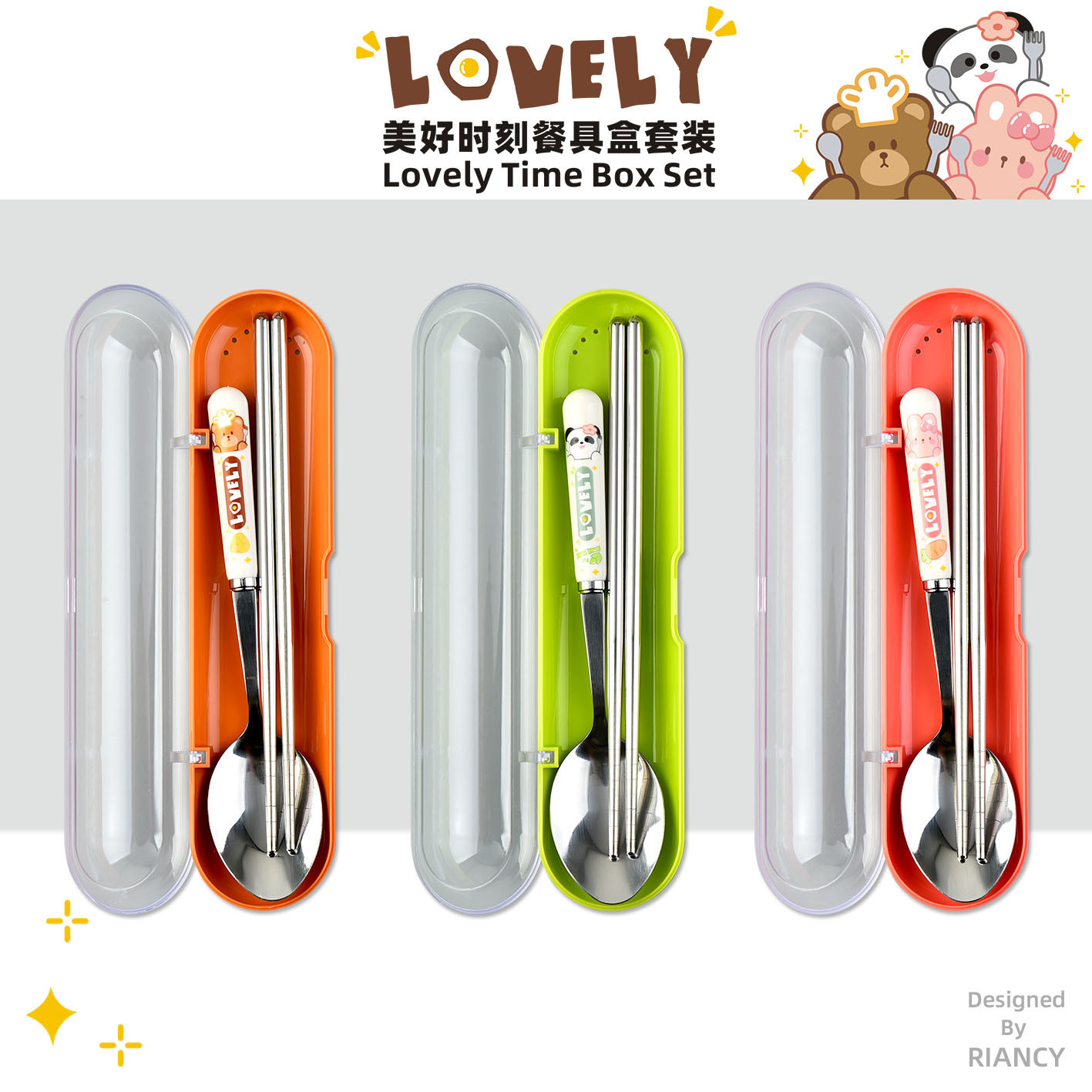 creative dcs2071 beautiful moment stainless steel tableware suit outdoor student portable tableware box spoon chopsticks