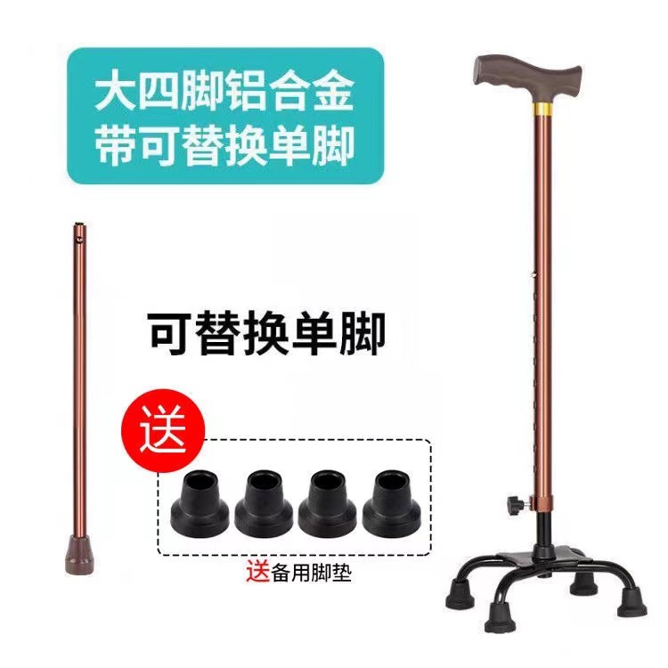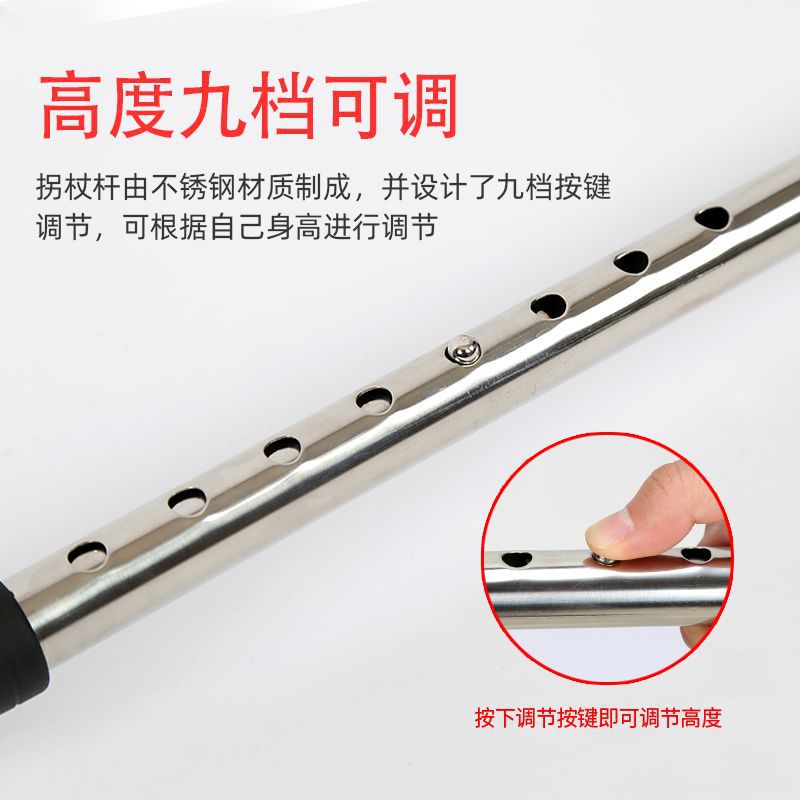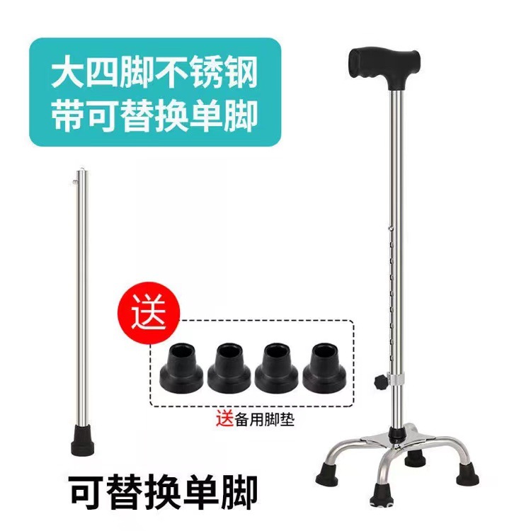 four-leg crutches single-leg hand crutches stainless steel crutches aluminum alloy crutches thickened non-slip cane old people's non-stick disabled crutches