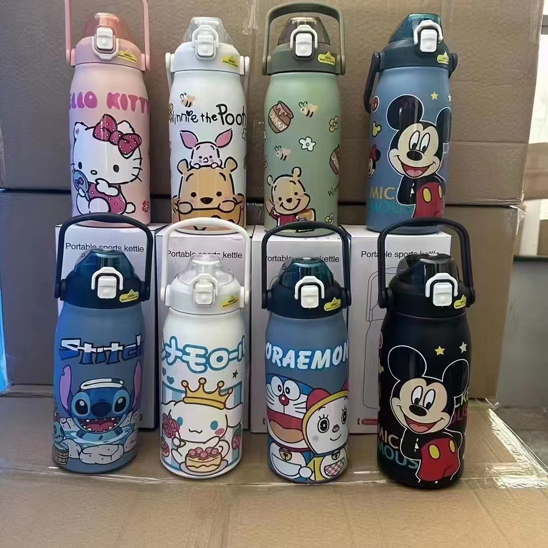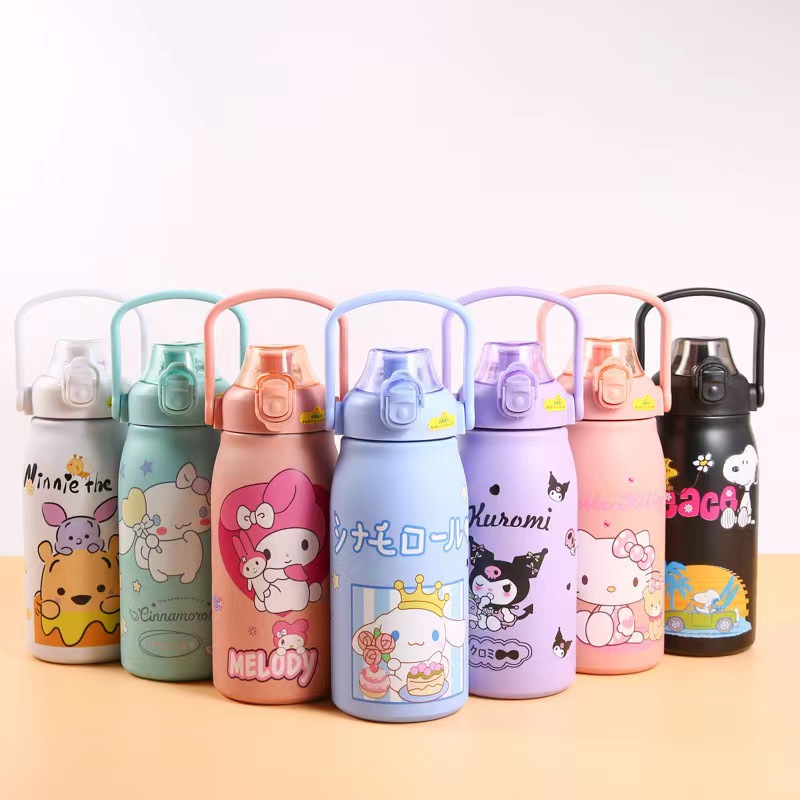 sanrio new cartoon large capacity portable thermal pot ins good-looking outdoor sports vacuum cup with straw