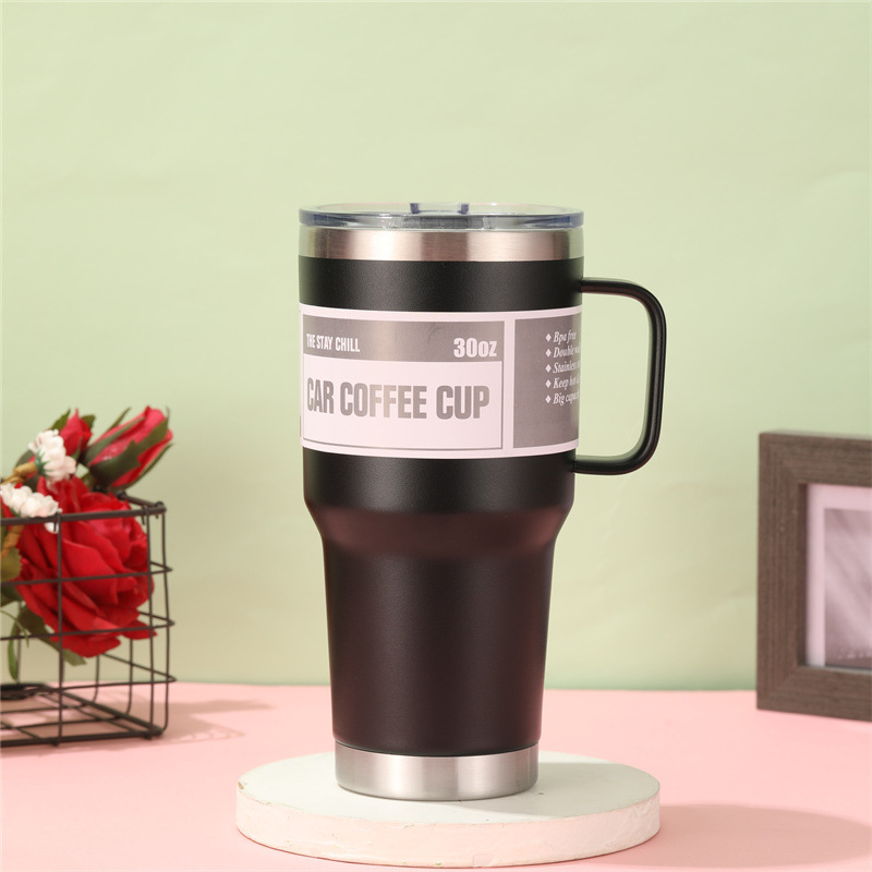 cross-border new arrival 30oz magnetic lid cup 304 stainless steel vacuum mug with handle straw cup wholesale