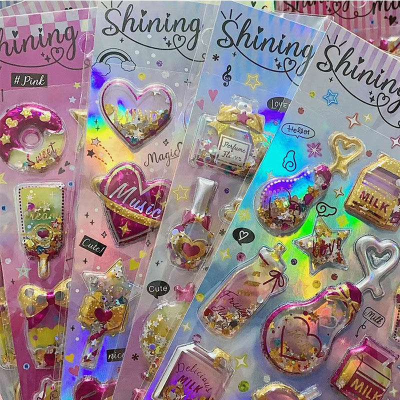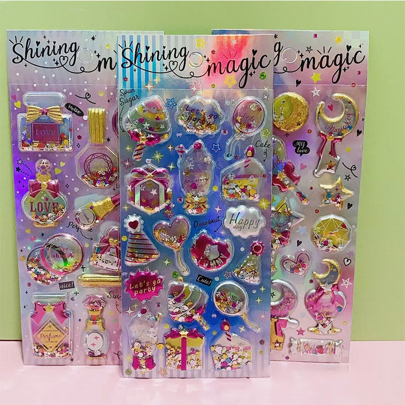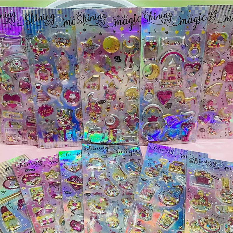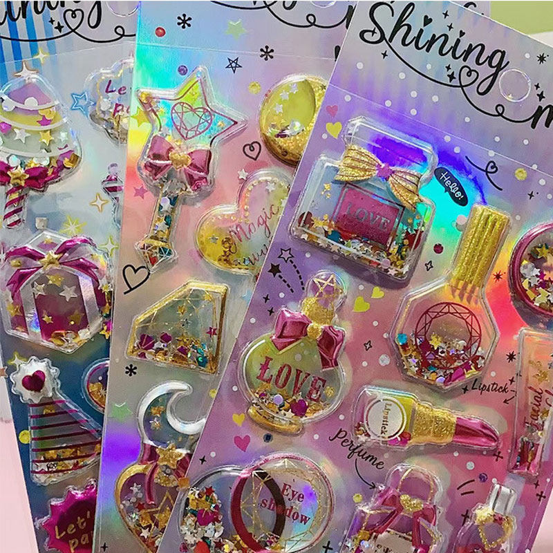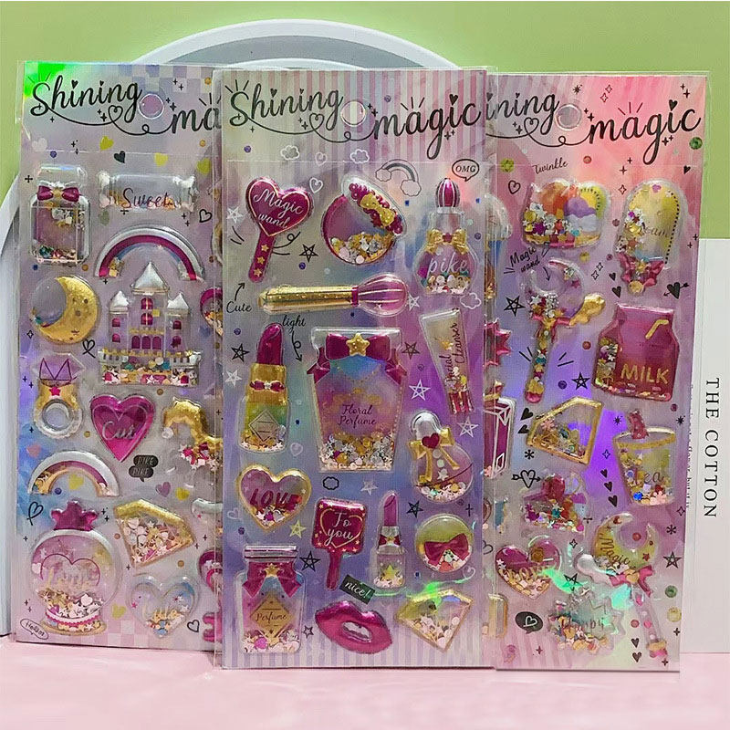 children's stickers diamond gem crystal stickers girl princess 3d three-dimensional shake stickers baby little stickers cartoon