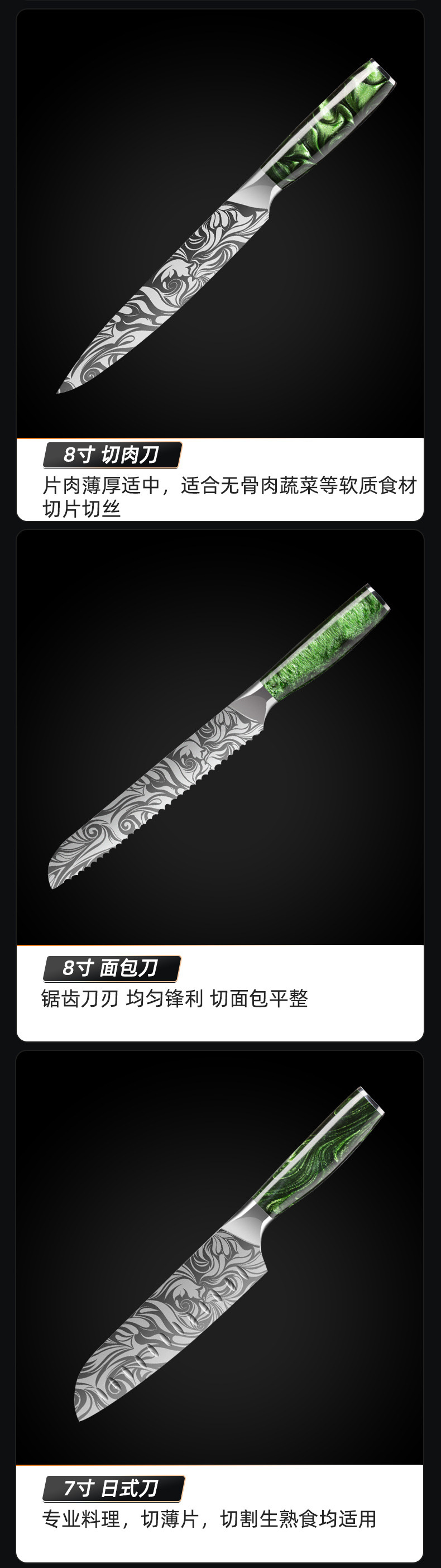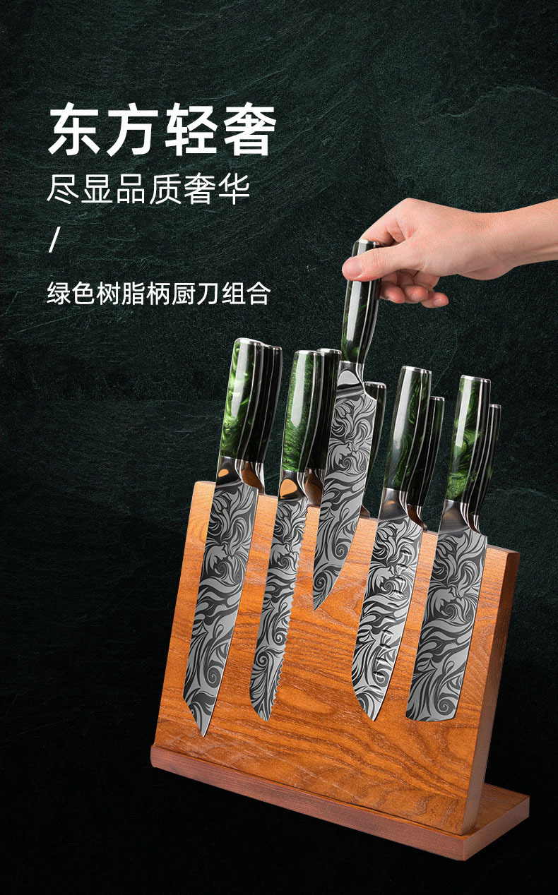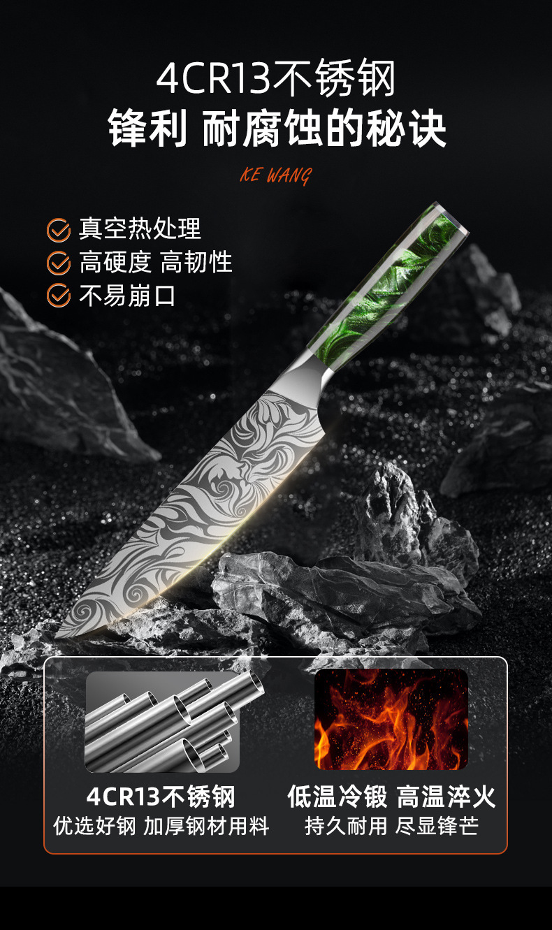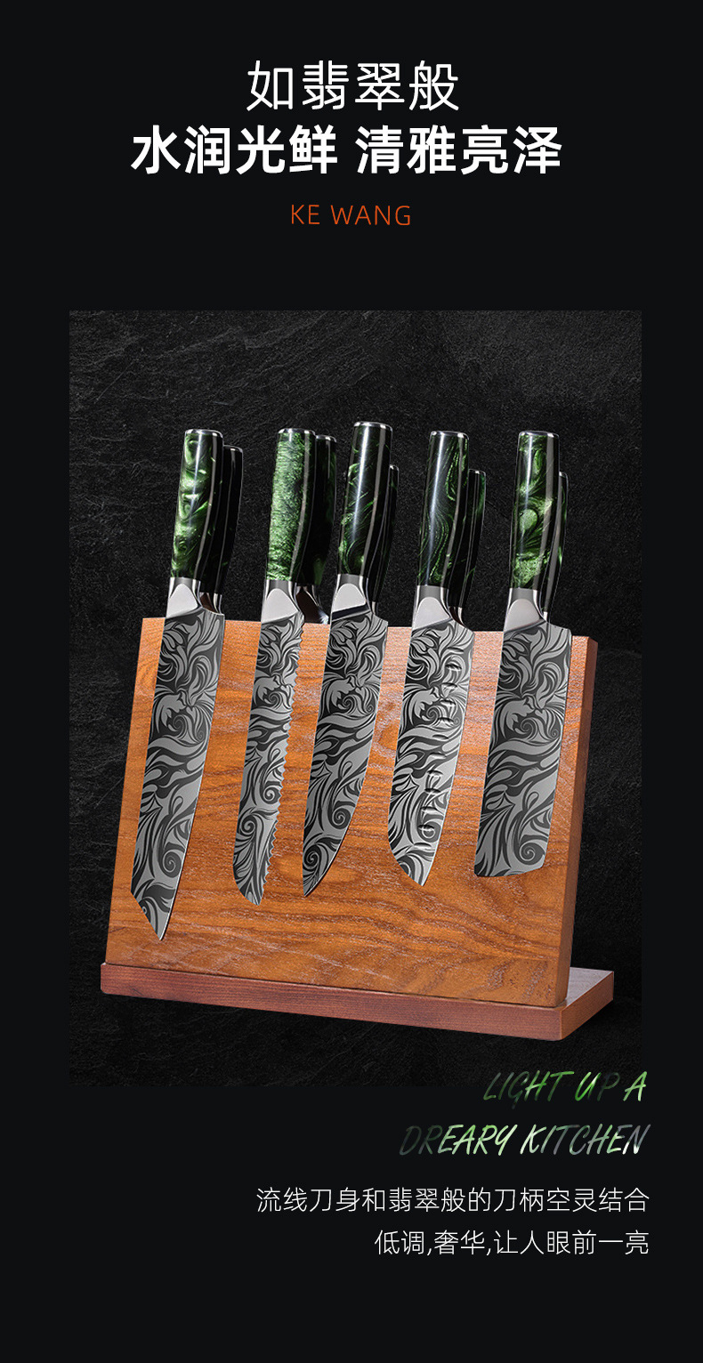 amazon cross-border damascus pattern knife set stainless steel knife chef knife household cleaver chef cooking knife