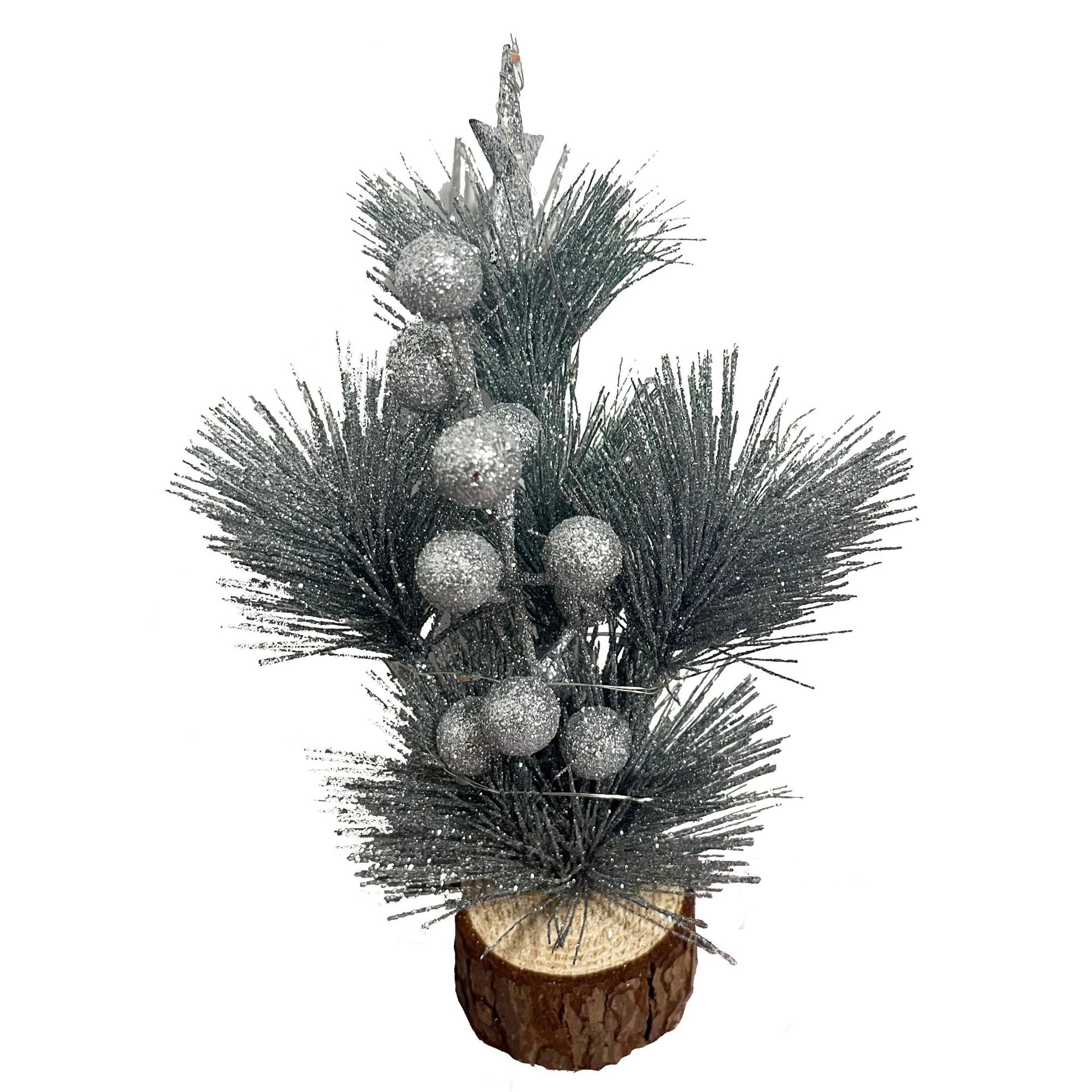 new led christmas gold powder snow-stained pine needle with light desktop window mini christmas tree ornaments decoration