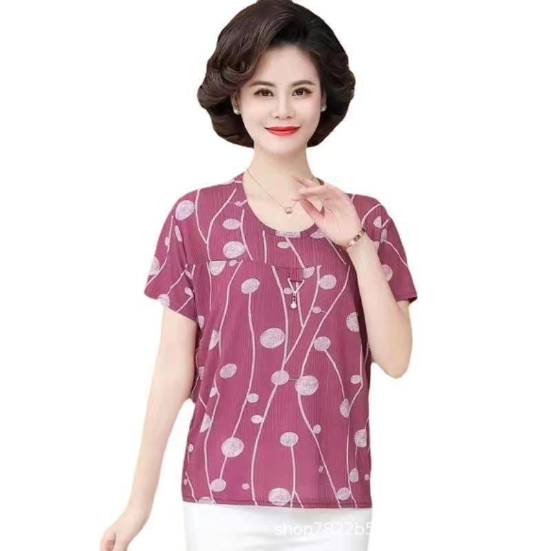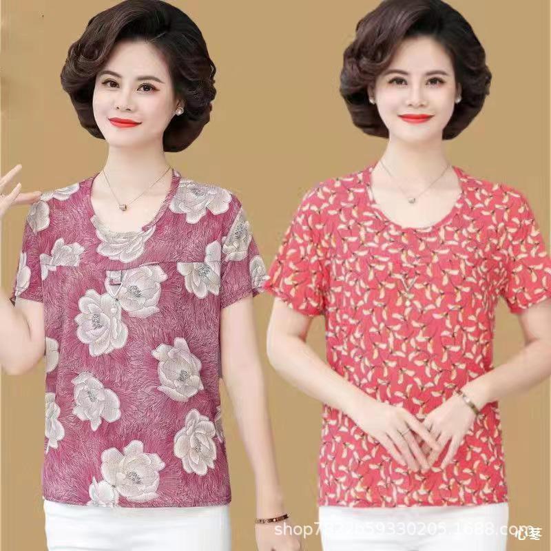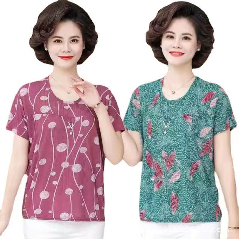 [Name]: Mom wear middle-aged and elderly women's clothing Ice Silk Short Sleeve