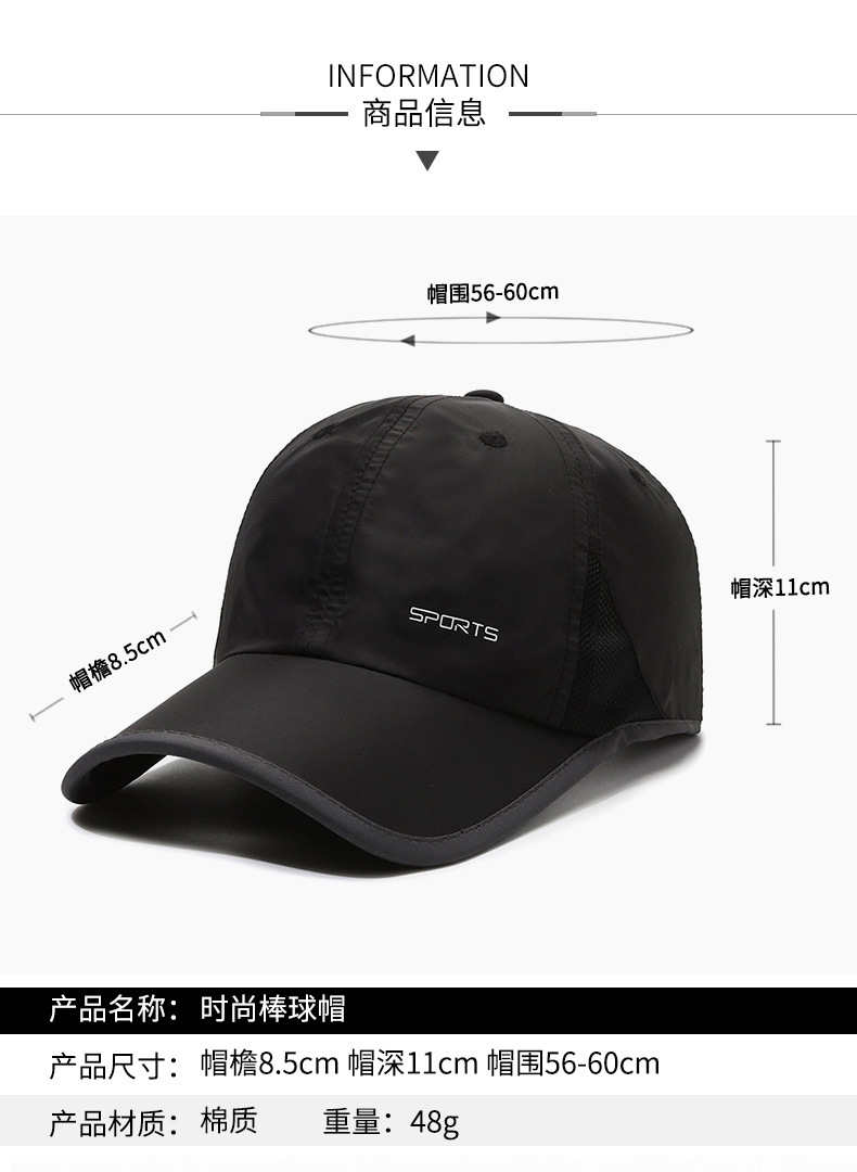 Quick-Drying Cap Hat for Men Spring and Summer Thin Soft Peaked Cap Ultra-Light Sun Protection Sun Hat Outdoor Fishing Cap
