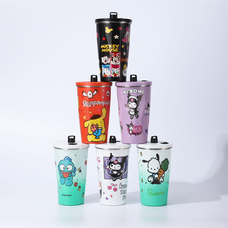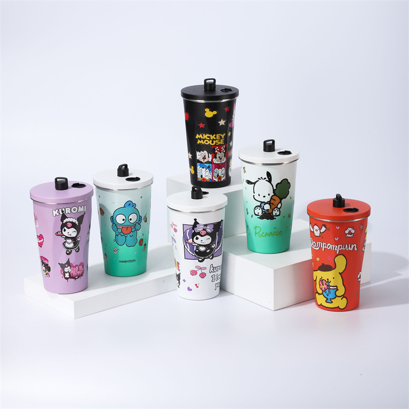 304 stainless steel insulated straw cup 3d printing cartoon coffee cup insulation large capacity cup customized wholesale