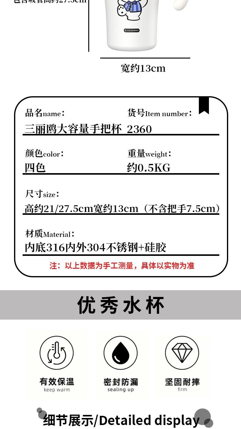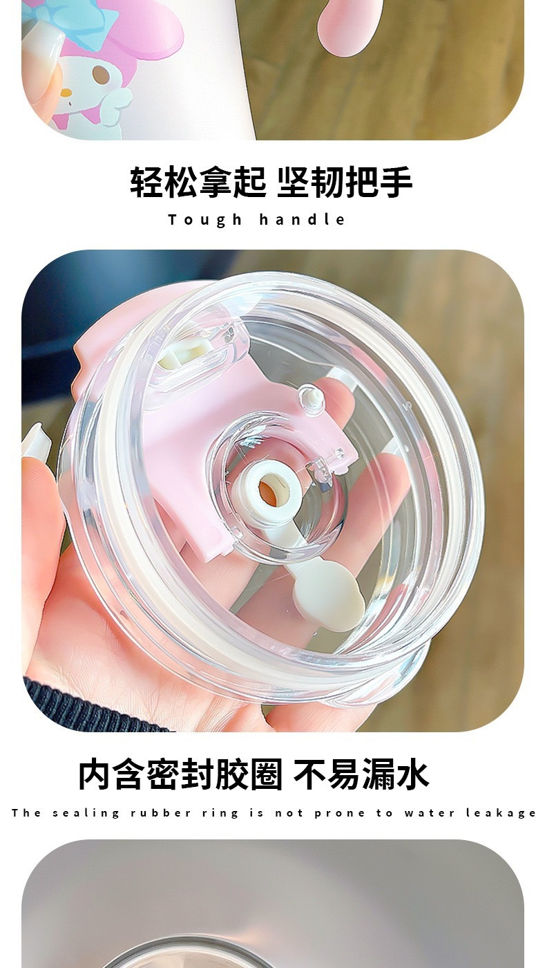 large capacity cartoon ice cream vehicle-borne cup girls' office insulated coffee cup portable student outdoor straw kettle