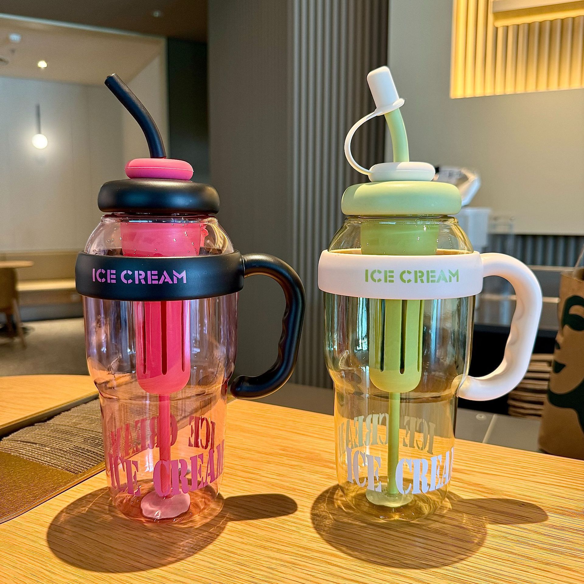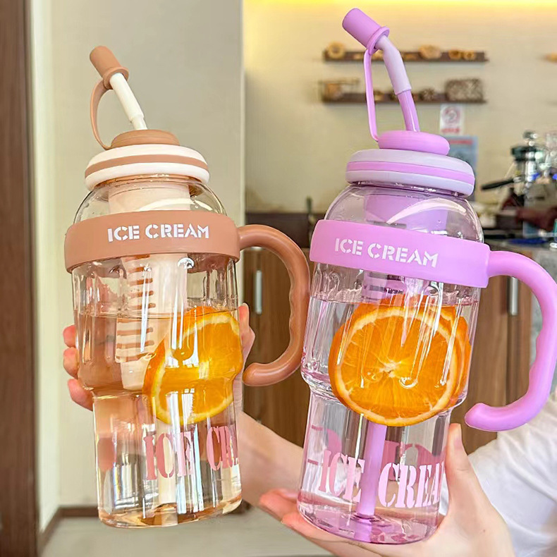 summer hot good-looking ice cream plastic cup large capacity boys and girls tea water separation with straw convenient with handle
