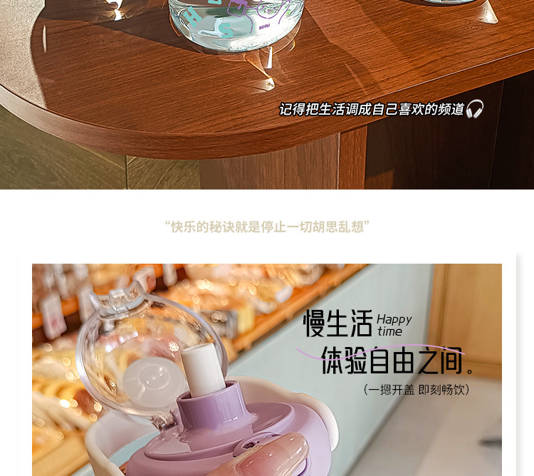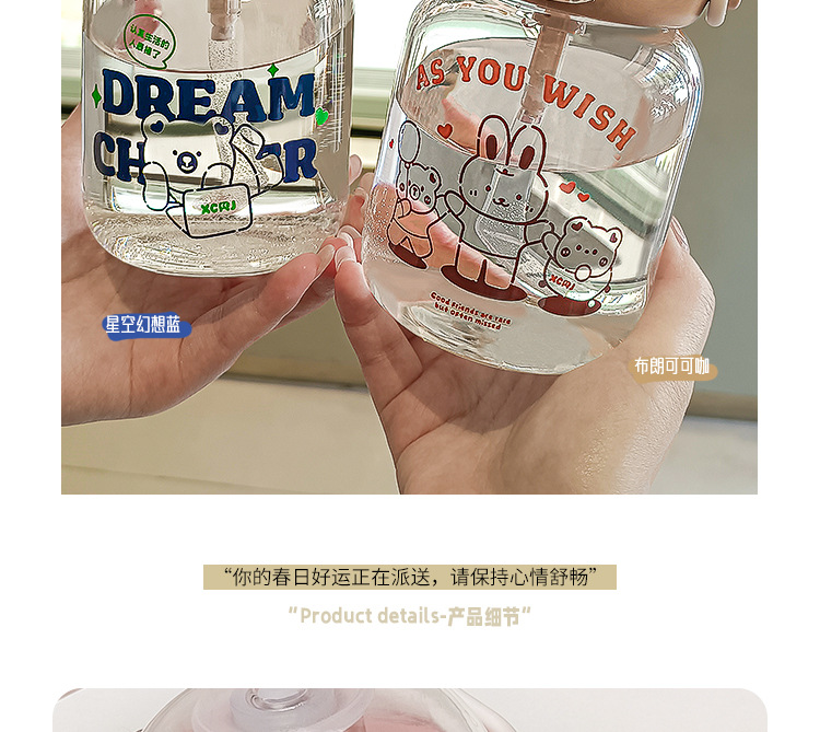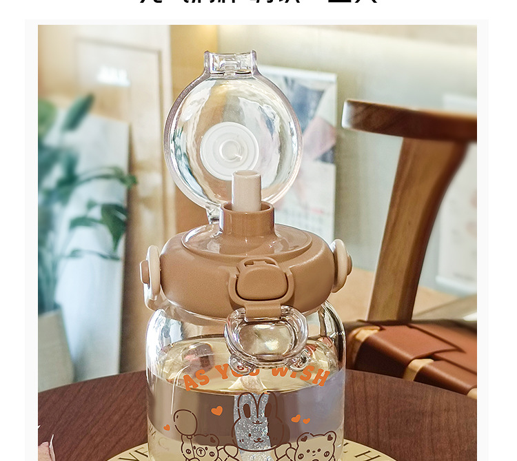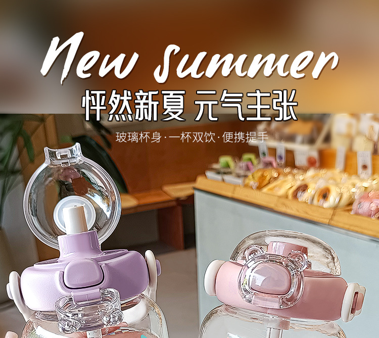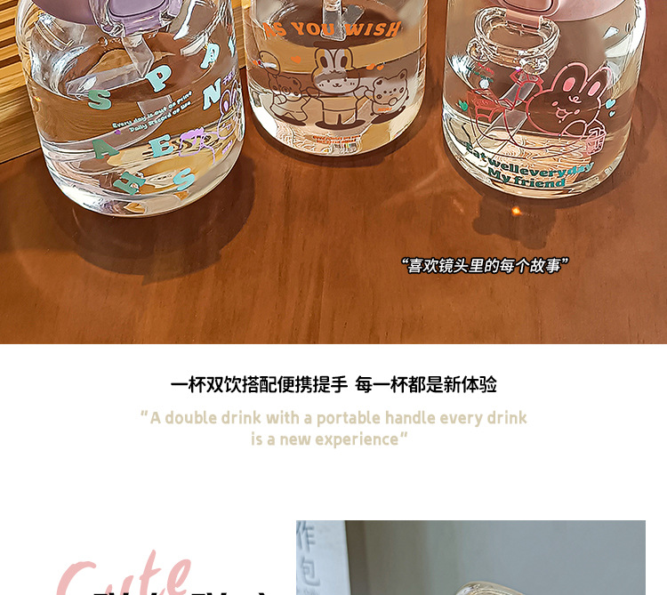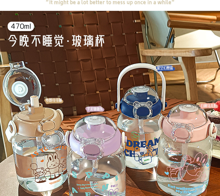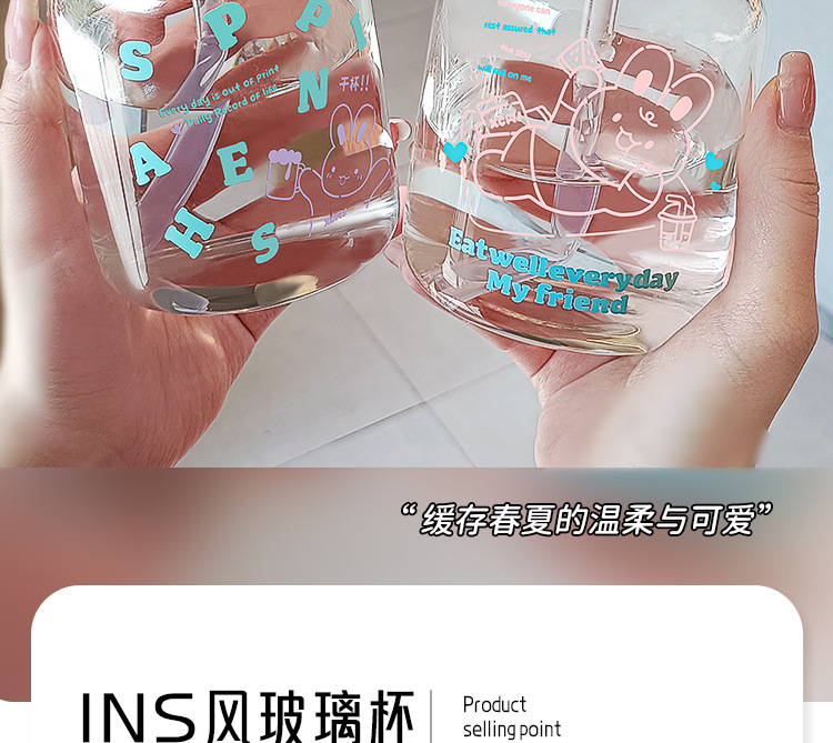 2024 new good-looking student glass cup cute simple girl straw cup portable handy cup ins