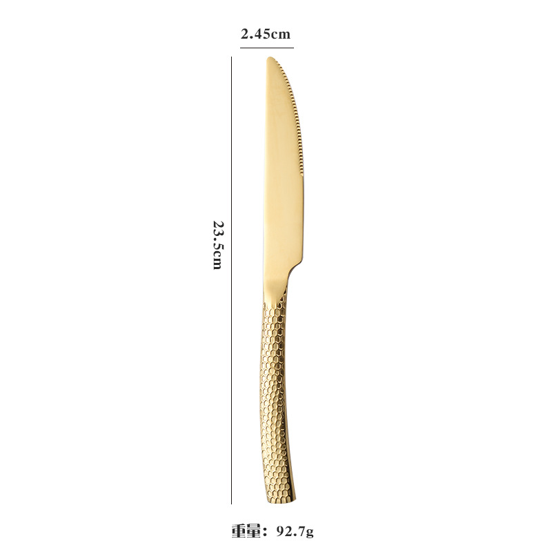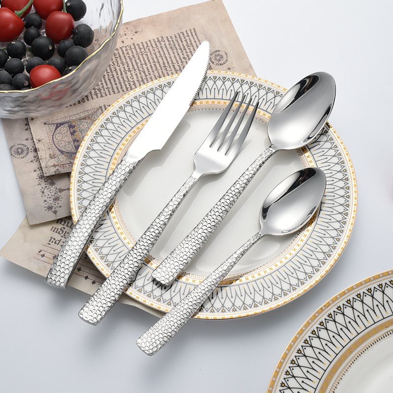 cross-border stainless steel hammer pattern knife, fork and spoon square handle water cube knife, fork and spoon tableware creative hotel western restaurant tableware set