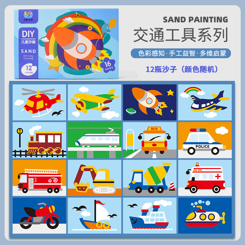 traffic [16 pieces 12 color sand 1 sand table 1 brush]]
