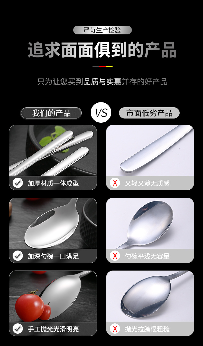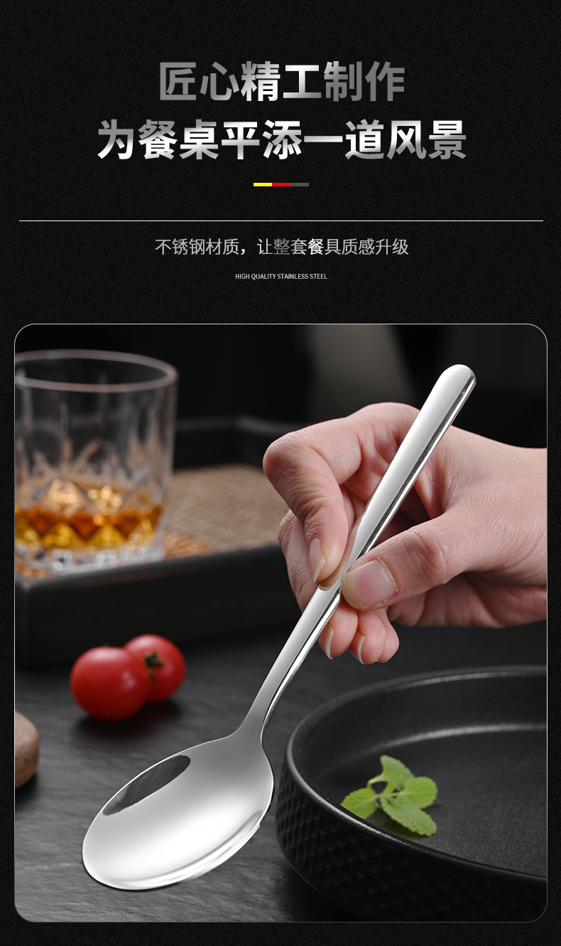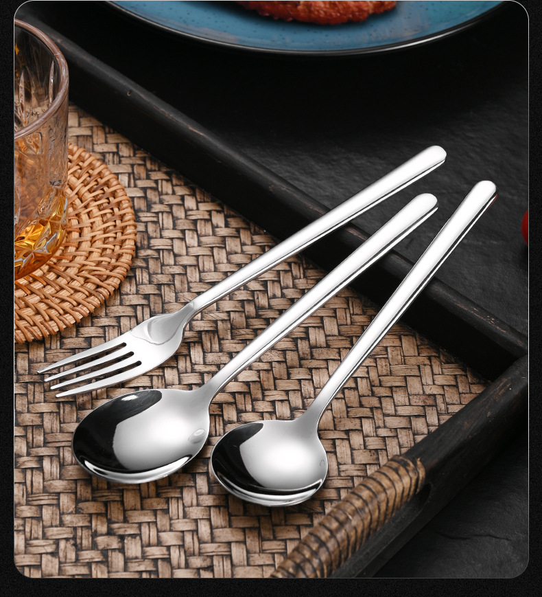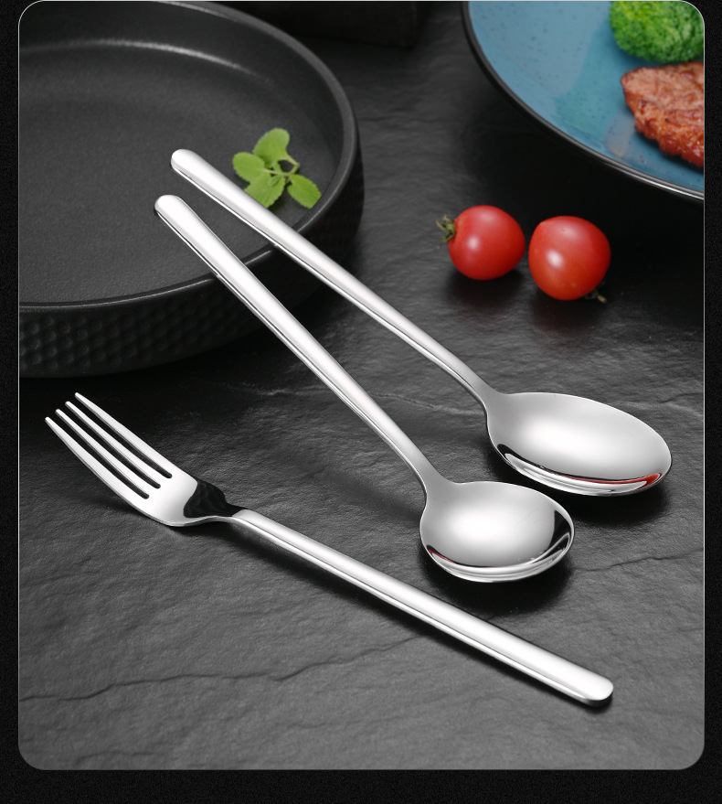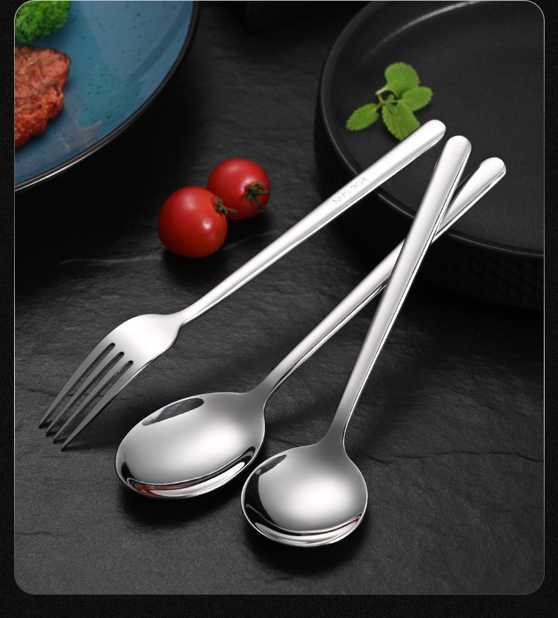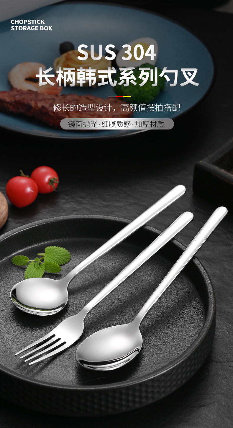 304 korean stainless steel spoon household long handle spoon dessert spoon fork coffee stir spoon eating spoon gold-plated spoon