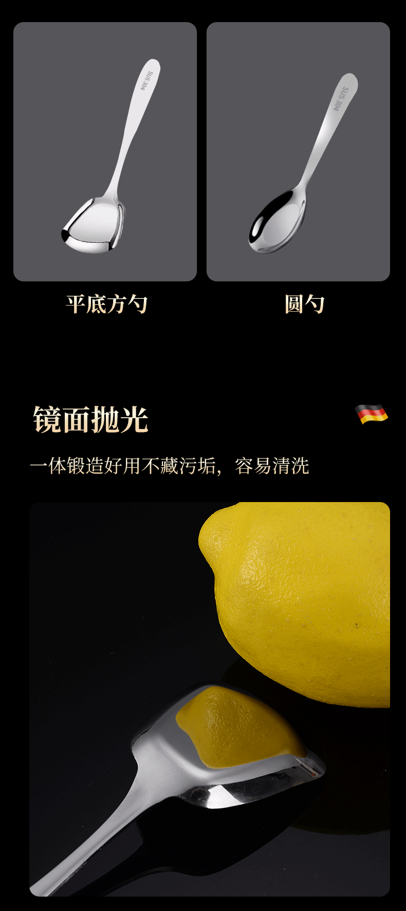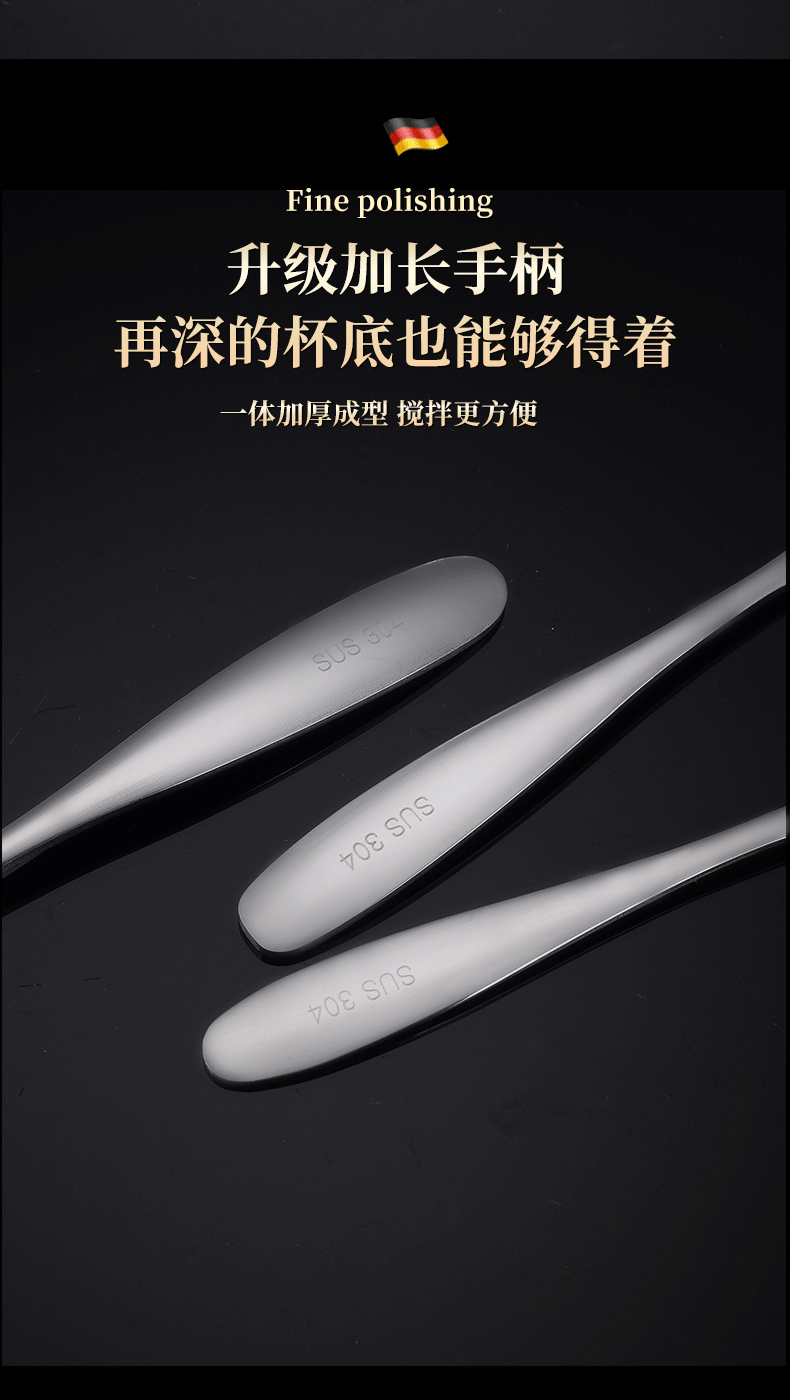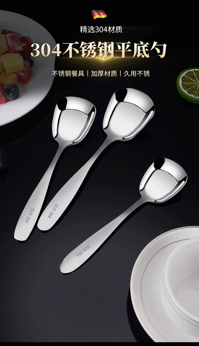 304 stainless steel thick cutlery hotel household flat-bottom spoon spoon square head dessert spoon spoon stirring spoon