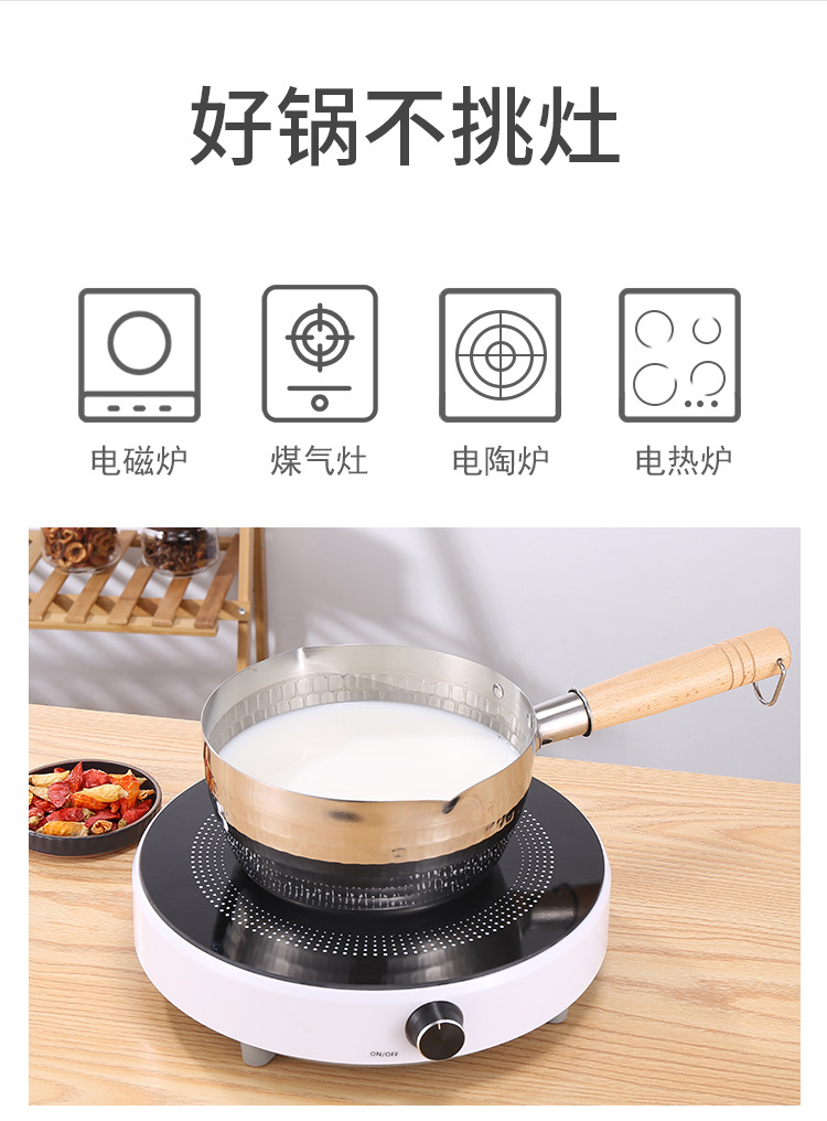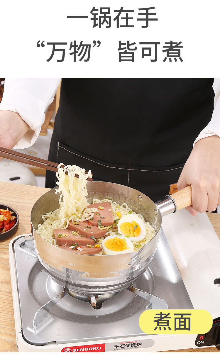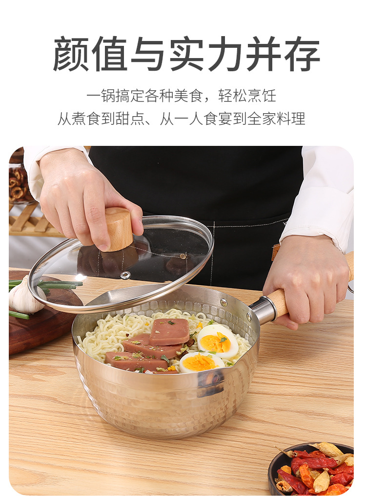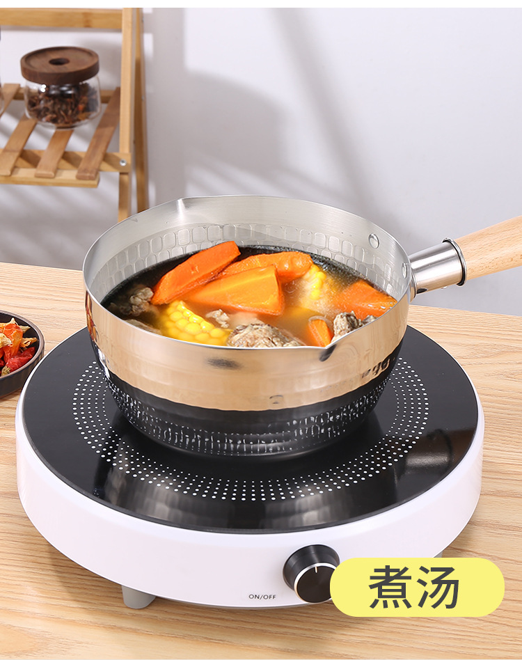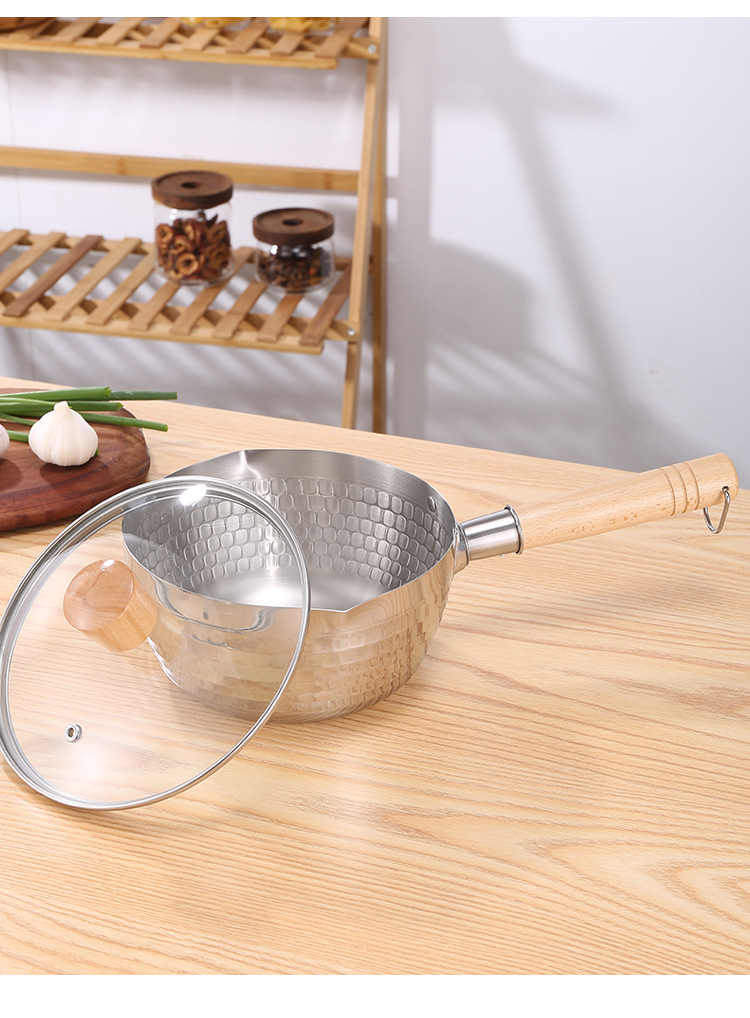 on behalf of the consignor stainless steel yukihira pan japanese style wooden handle flat bottom household complementary food pot cooking hammer pattern milk pot non-stick soup pot