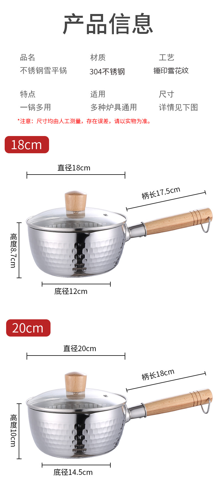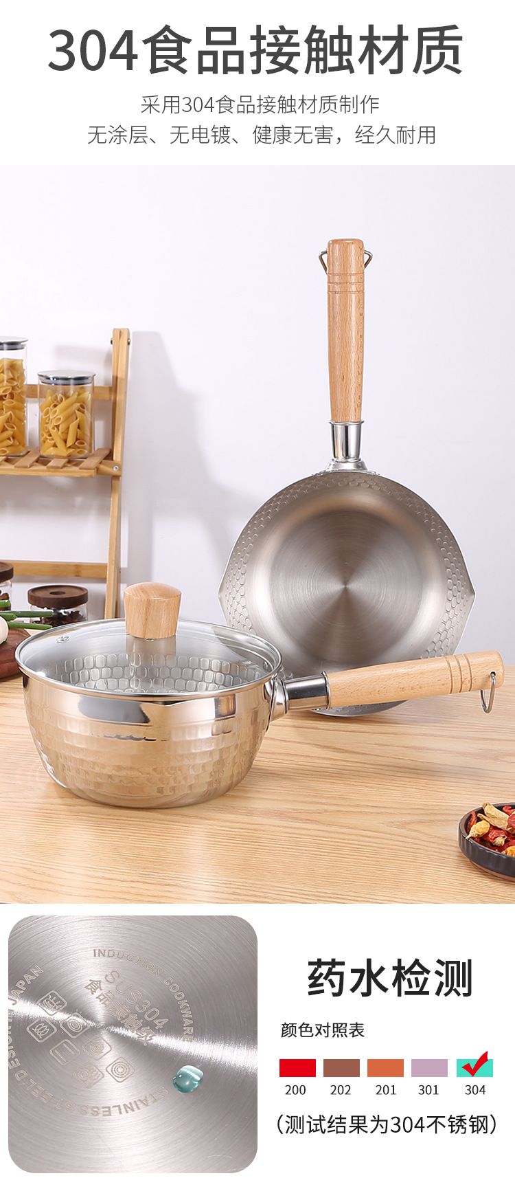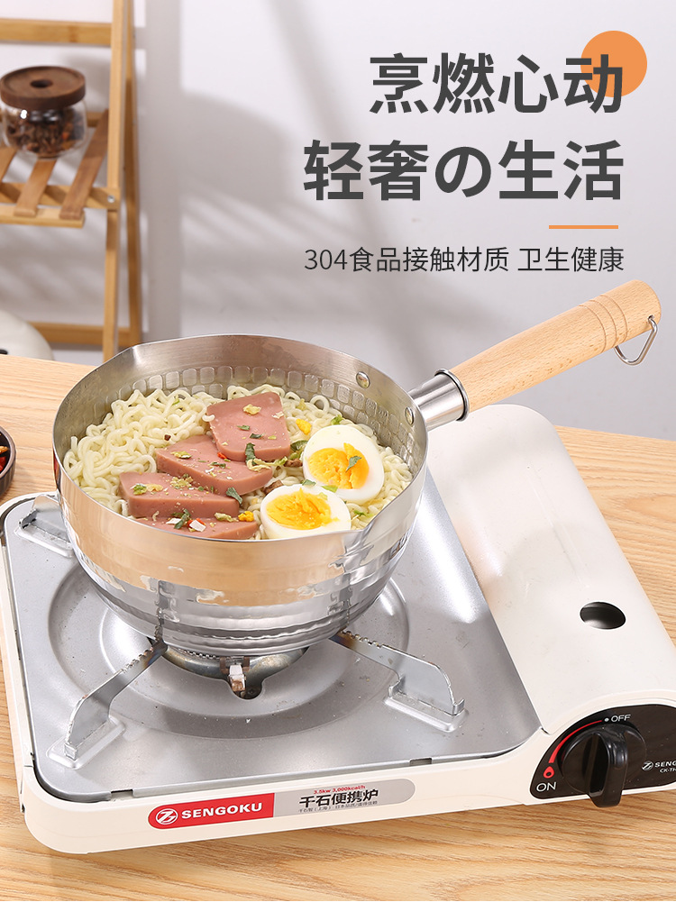 on behalf of the consignor stainless steel yukihira pan japanese style wooden handle flat bottom household complementary food pot cooking hammer pattern milk pot non-stick soup pot
