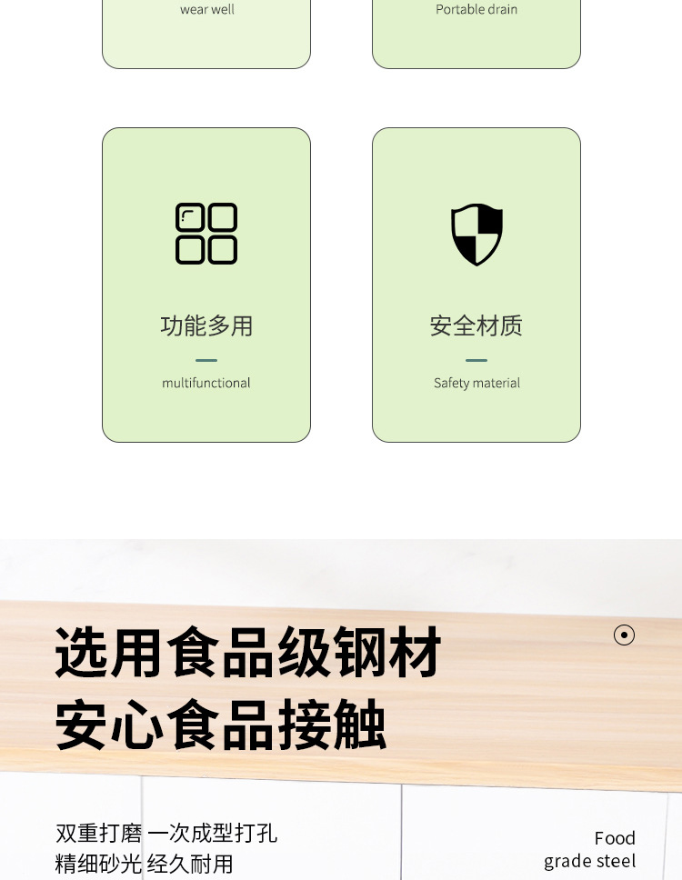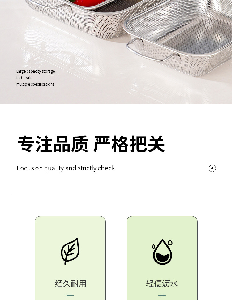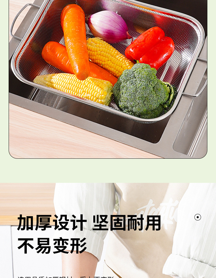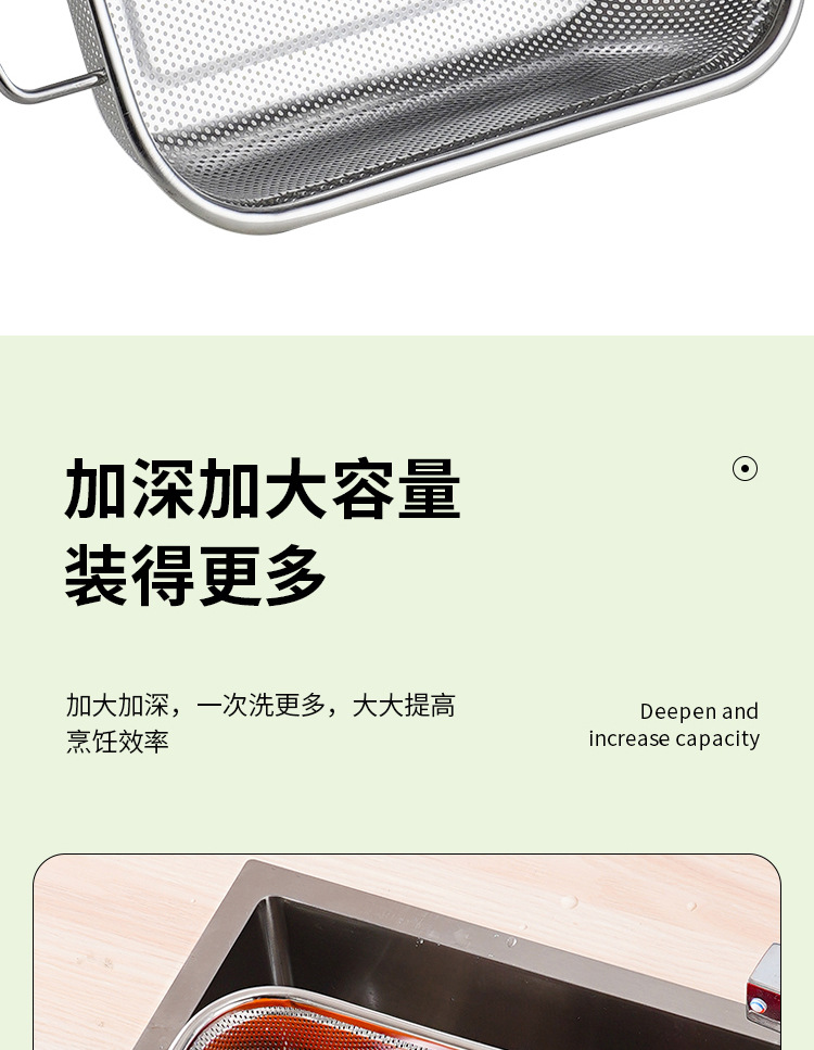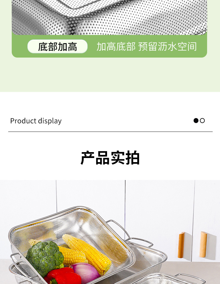 food grade stainless steel hole basket rectangular double-ear steel handle drain basket multifunctional accessory washing fruit and vegetable rice washing
