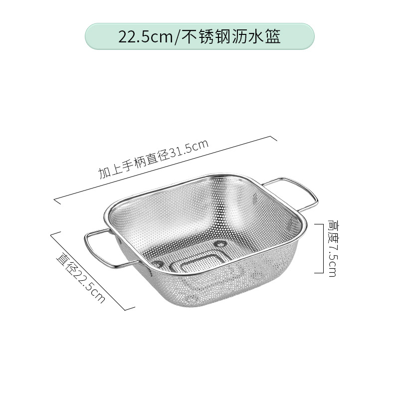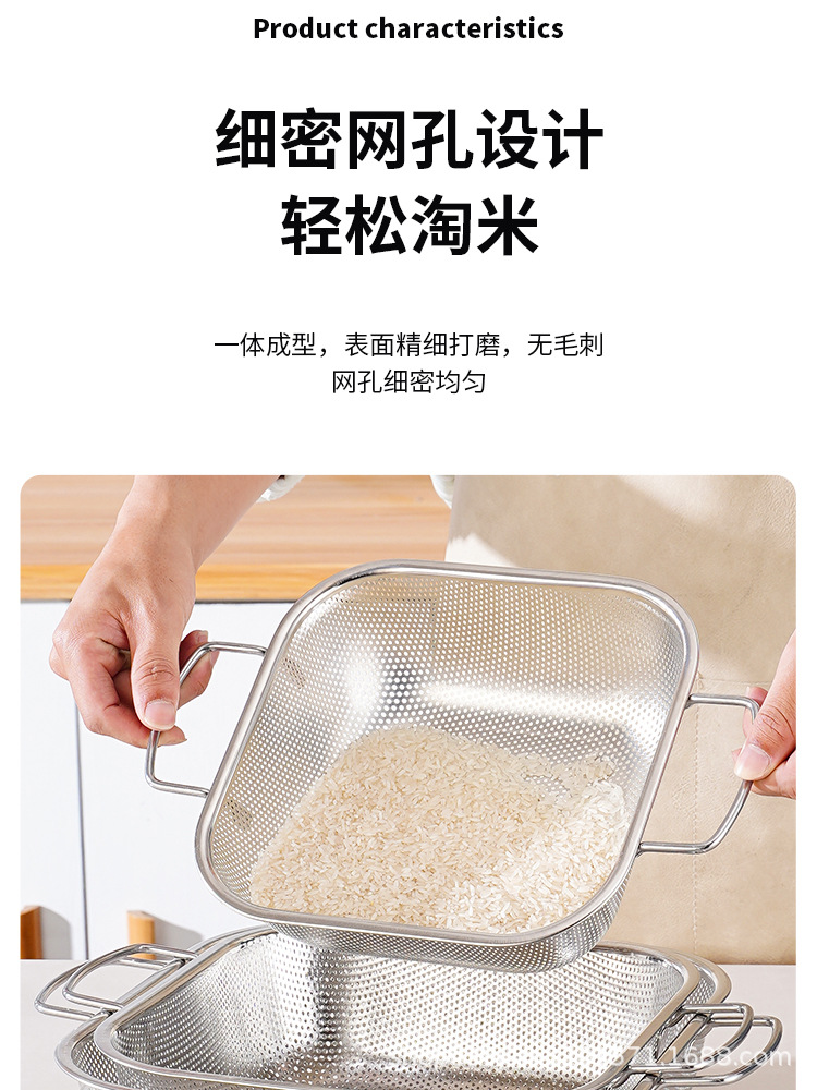 food grade stainless steel kitchen supplies square double-ear steel handle drain basket multifunctional accessory washing fruits and vegetables rice washing