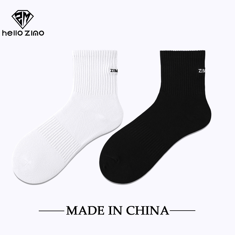Hello Zimo Socks Men's Mid-Calf Length Sock Black and White Embroidered Xinjiang Cotton Deodorant and Sweat-Absorbing All-Match Skateboard Students' Socks