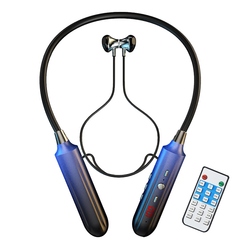 gradient black and blue headset + remote control