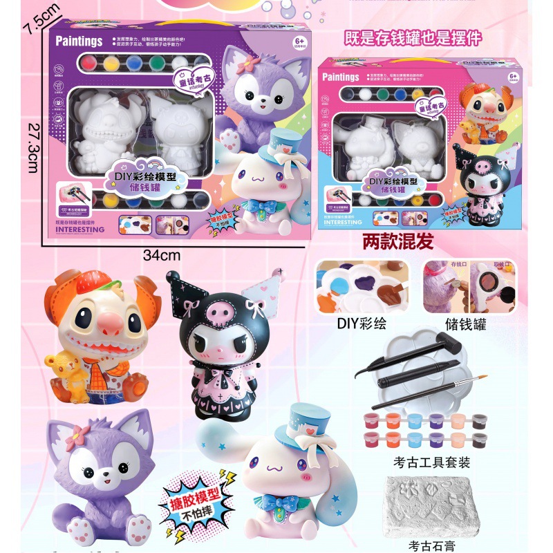 vinyl soft glue coloring sanli doll coin bank archaeological fossil combination