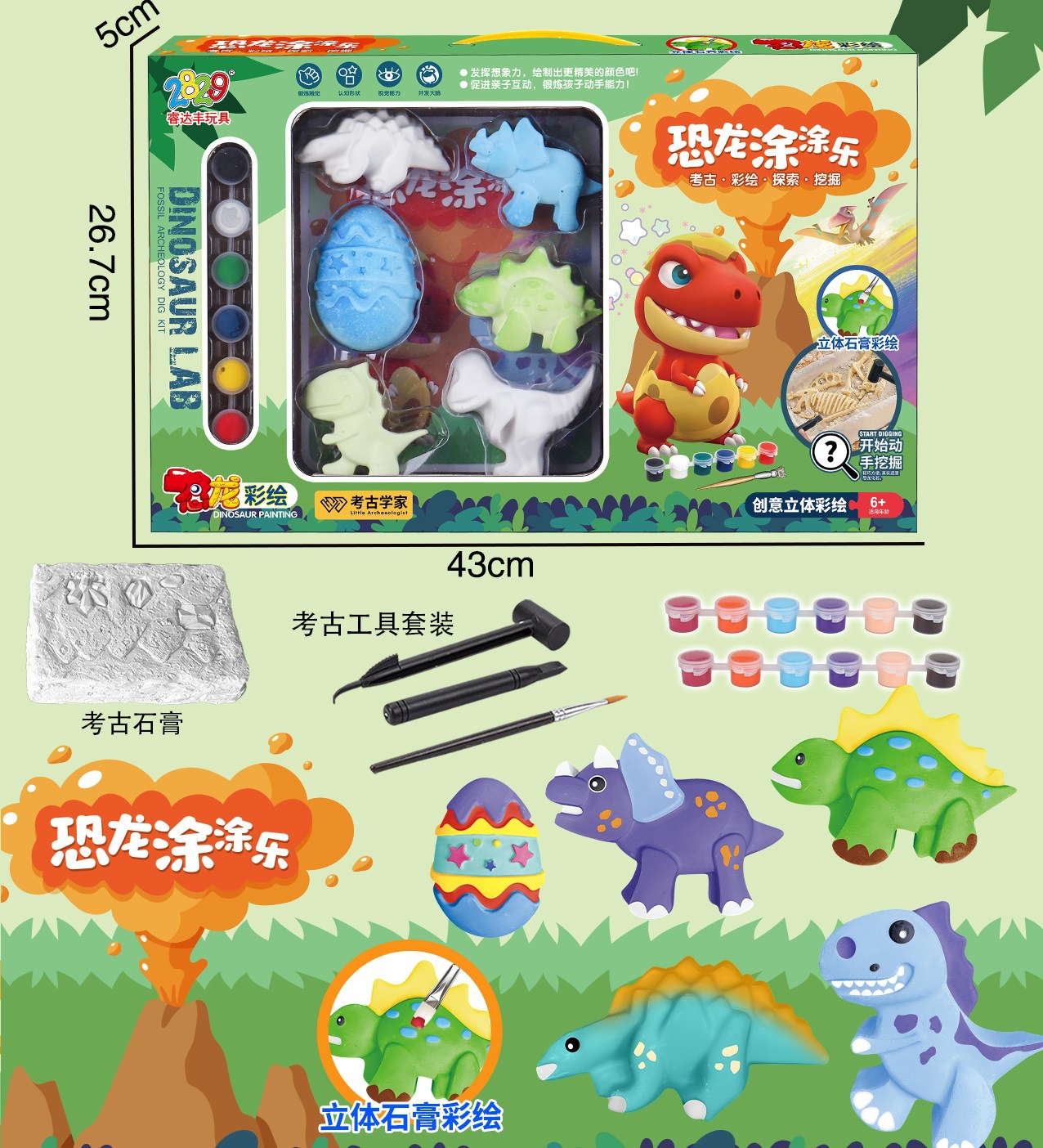 coloring plaster cartoon dinosaur big size color 6 archaeological fossil combination