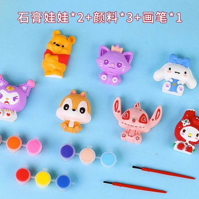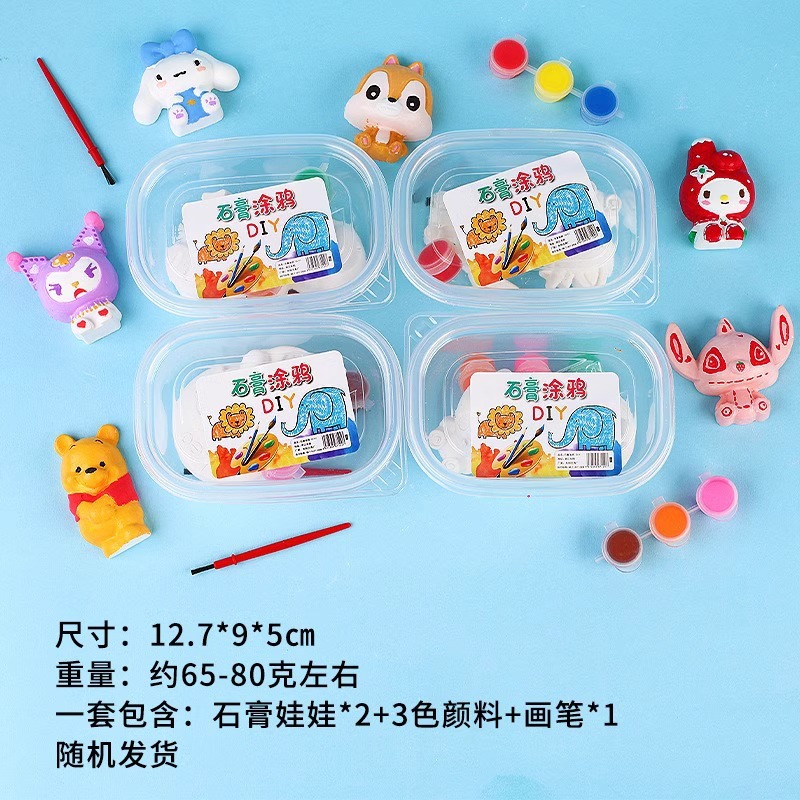 boxed plaster doll (including 2 plaster doll +3 colors acrylic paint +1 brush)