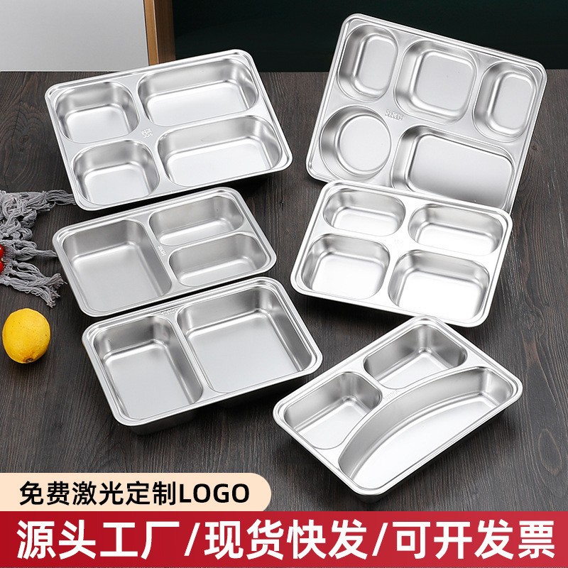stainless steel snack plate grid 304 student lunch box separated stainless steel meal tray adult four grid food dispatch disk with lid