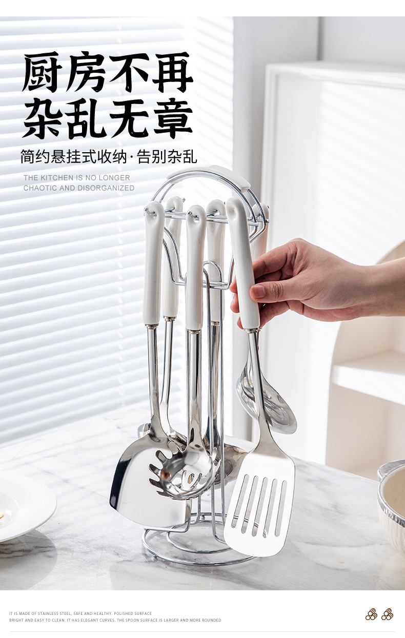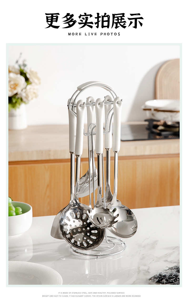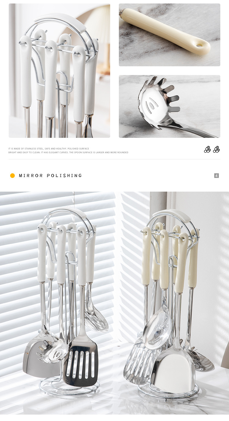 nordic stainless steel kitchenware home kitchen spatula spatula cooking kitchenware spatula strainer and soup spoon seven-piece