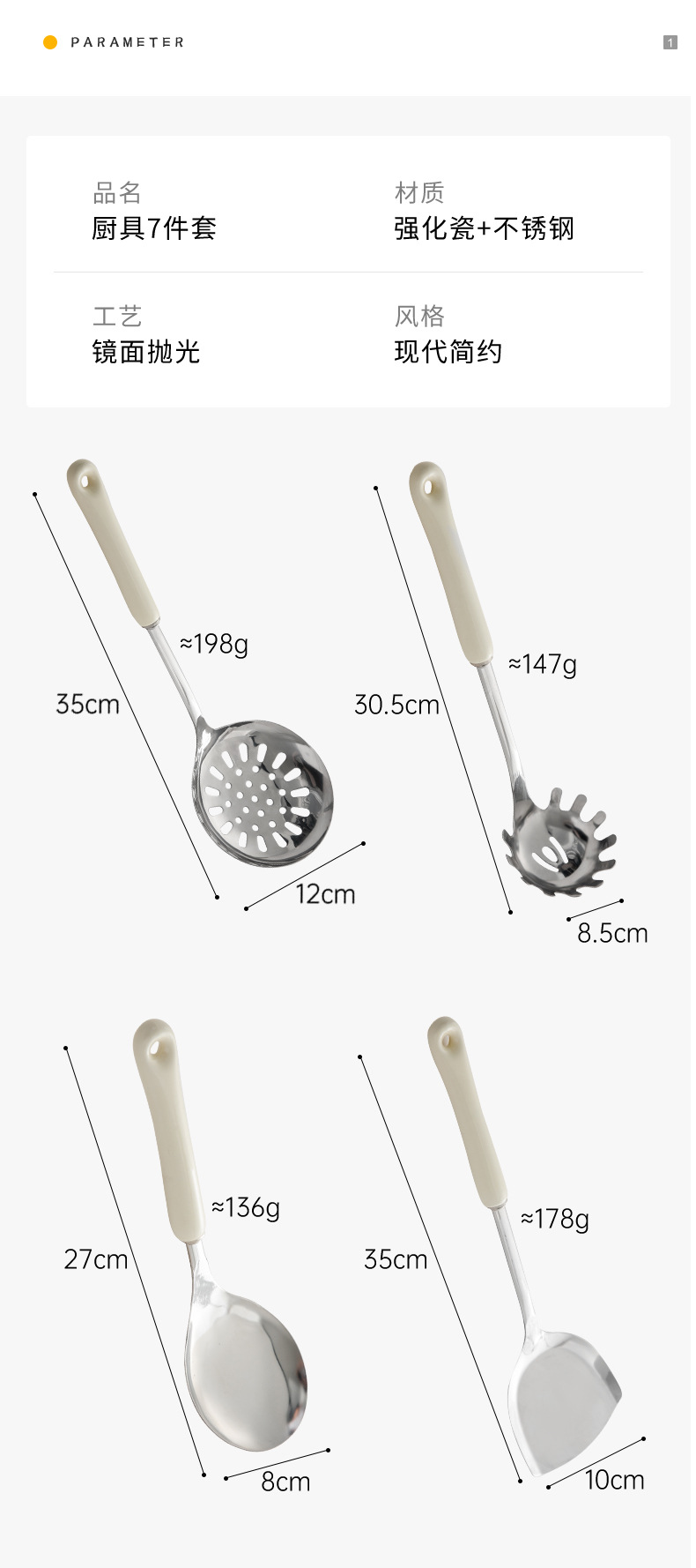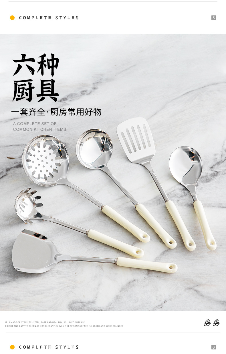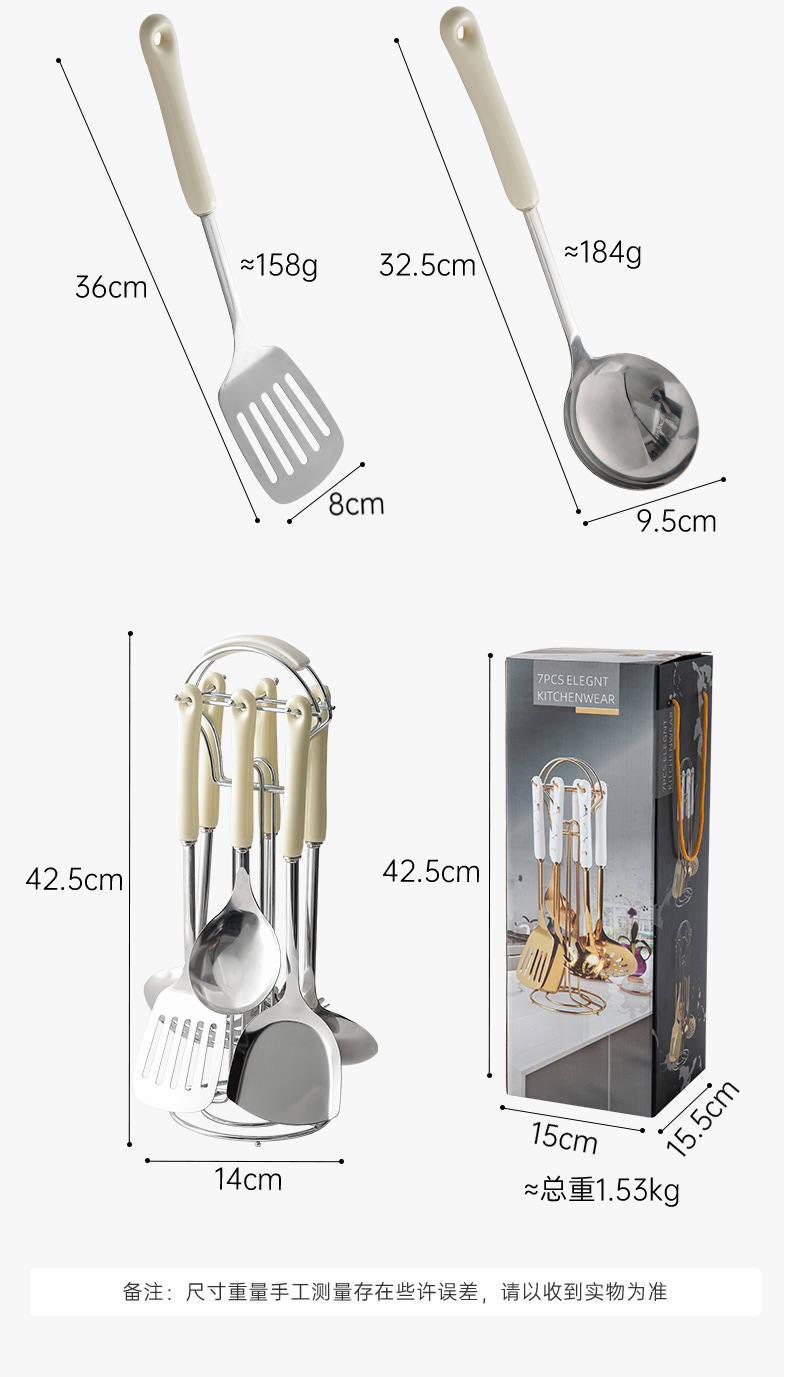 nordic stainless steel kitchenware home kitchen spatula spatula cooking kitchenware spatula strainer and soup spoon seven-piece