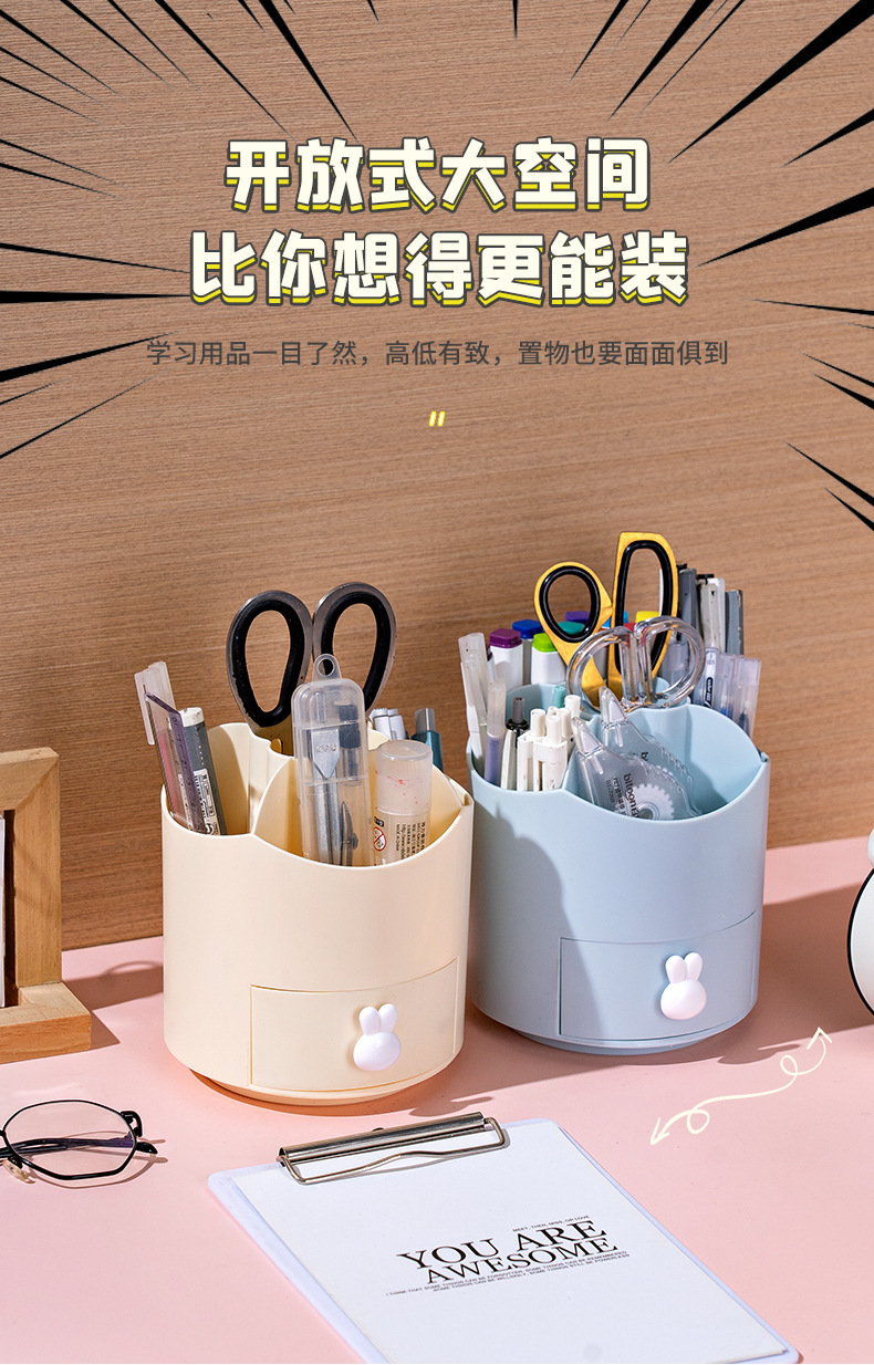 pen holder storage box student desktop office cute high-grade large capacity good-looking rotating pen holder simple