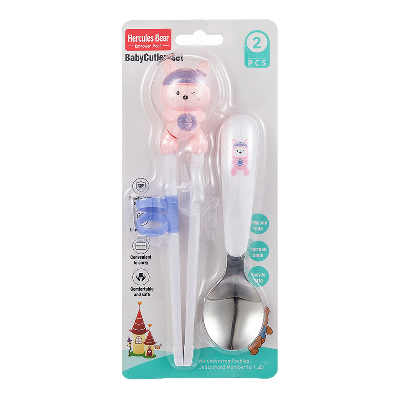 [cartoon bunny] learning chopsticks + stainless steel spoon [english packaging]]