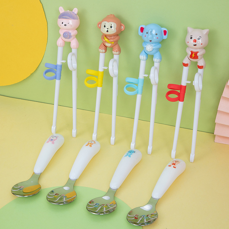 Product Name: Cartoon Children's Practice Chopsticks + Stainless Steel Spoon Set