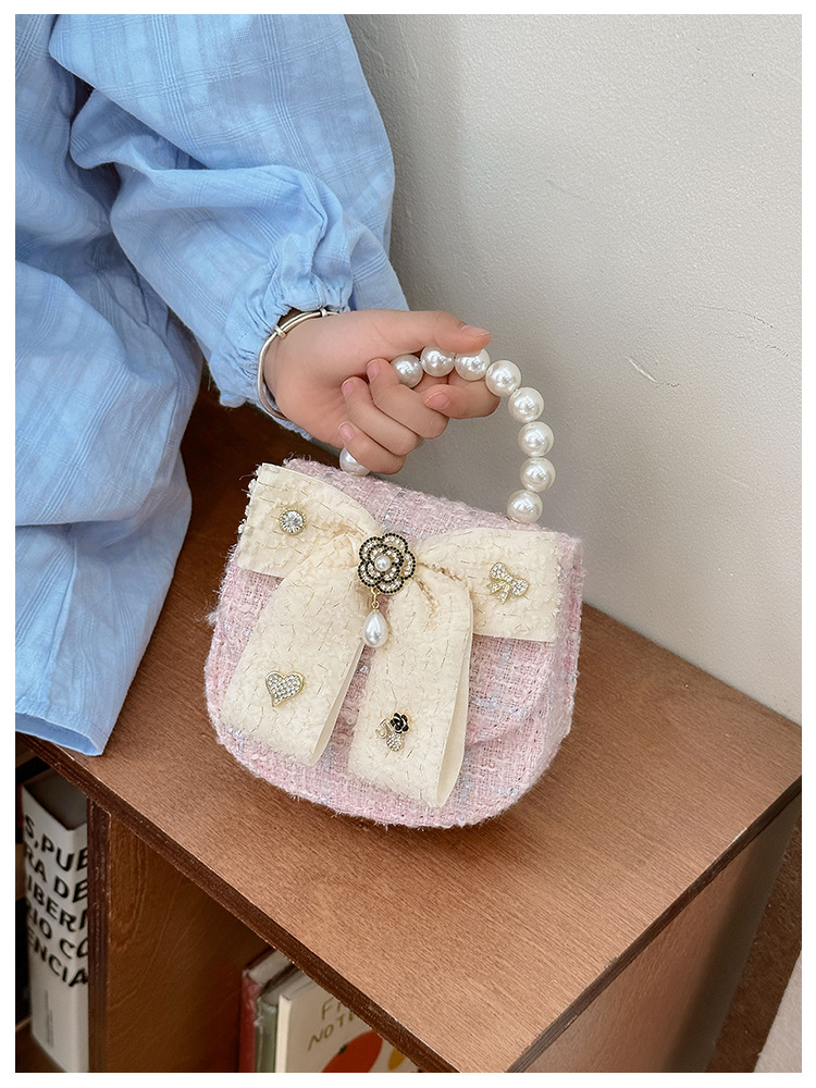 2024 classic style new version colorful butterfly knot portable pearl shoulder crossbody children's bag