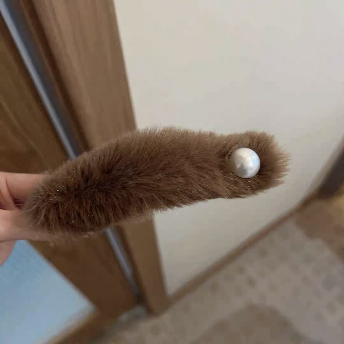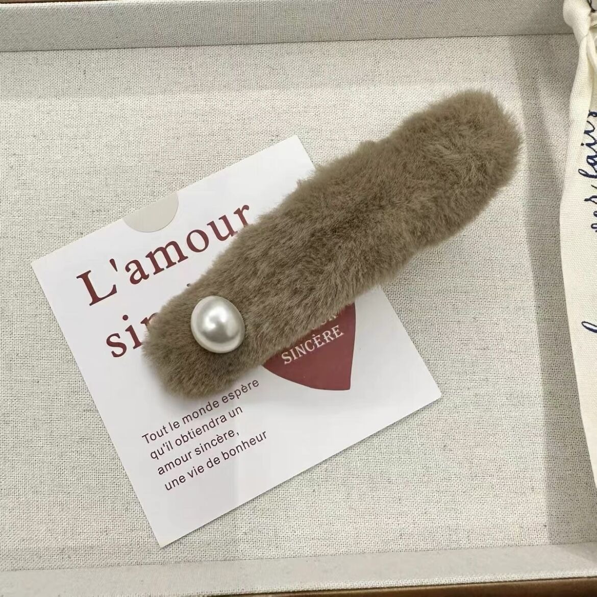 2# [pearl dark coffee color] plush duckbill clip