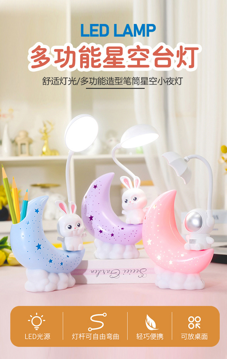 Cartoon Creative Cute Astronaut Moon Rabbit Starry Sky Small Night mp Birthday Gift Children's Desktop Eye Protection Table mp
