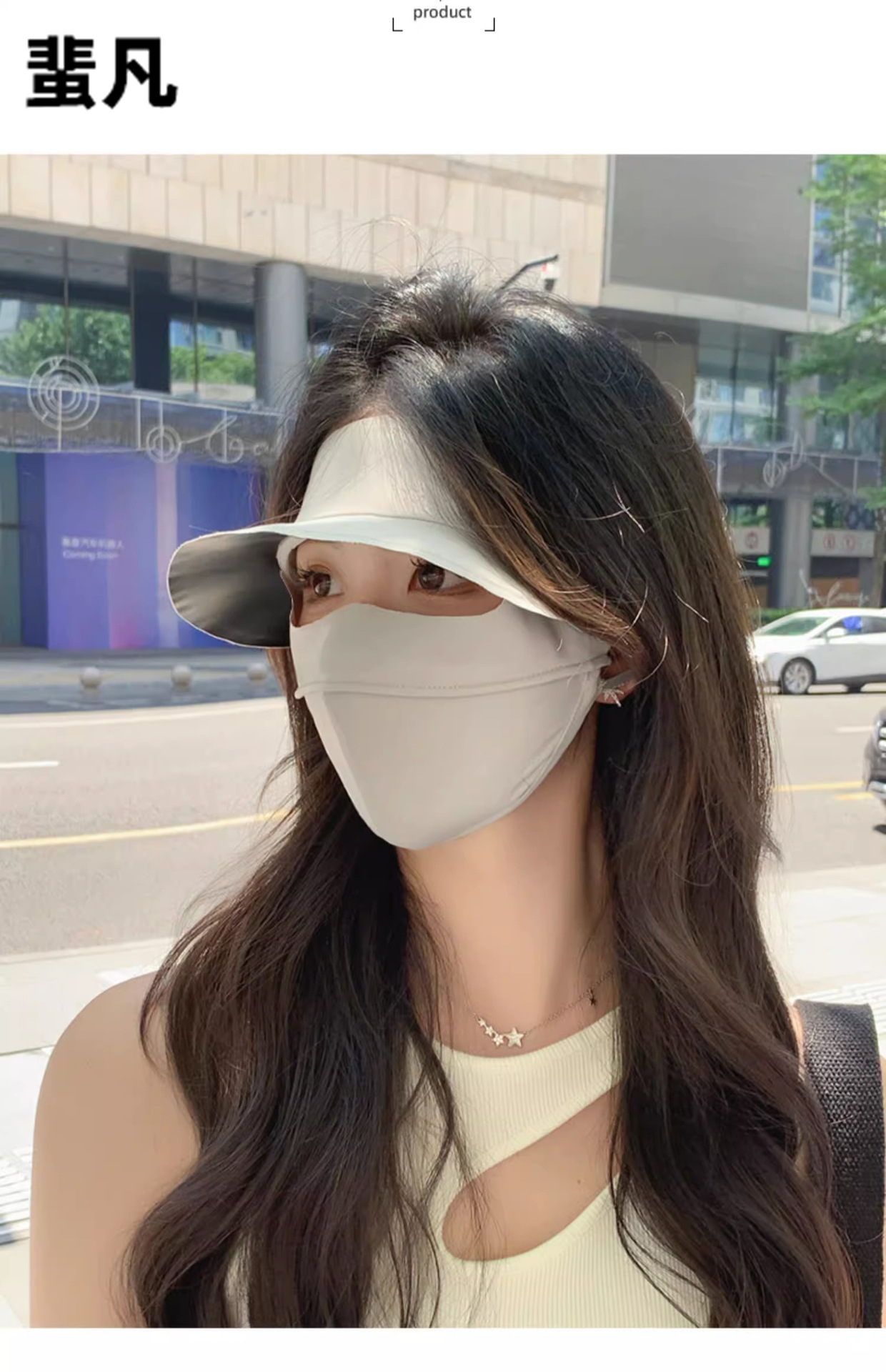 big brim short sun mask-beige (high quality)