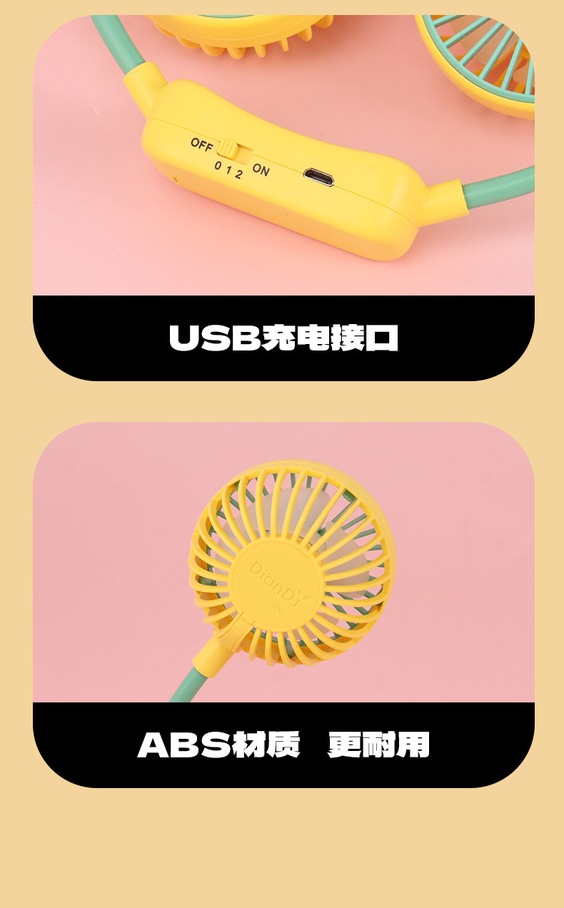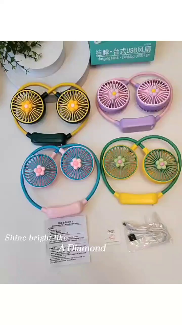 Cross-border new folding mini fan Outdoor sports portable camping neck fan Charging USB mini electric fan